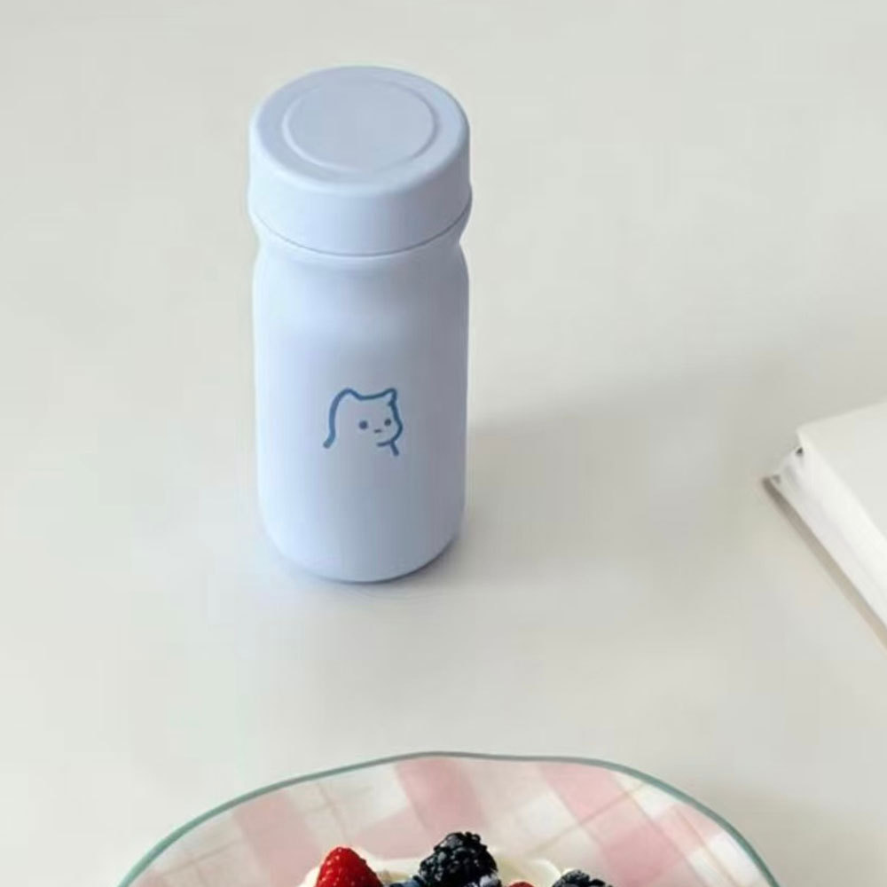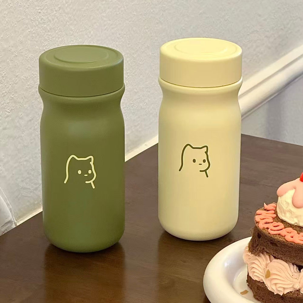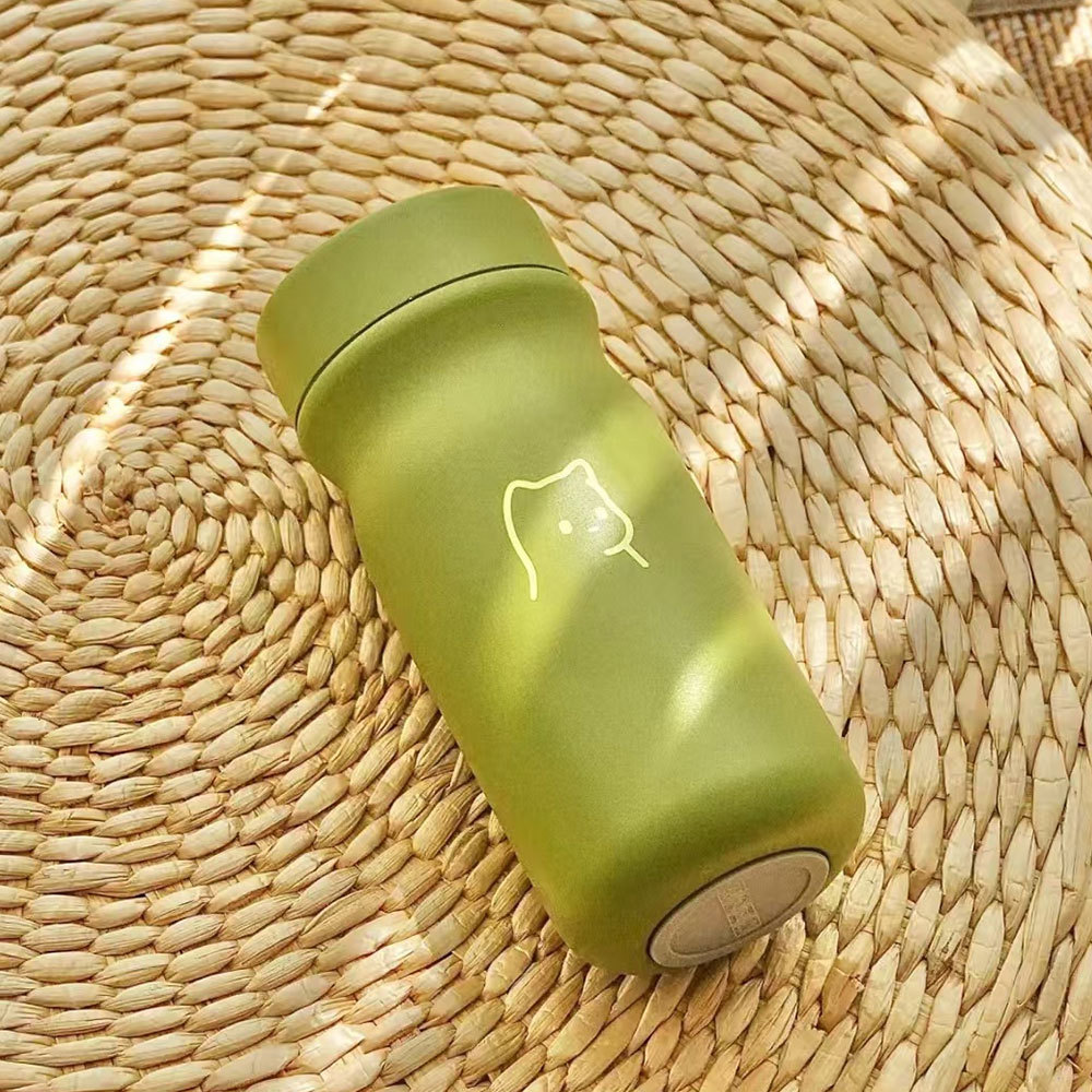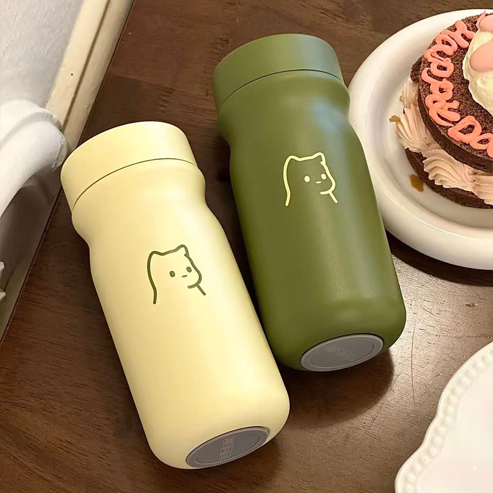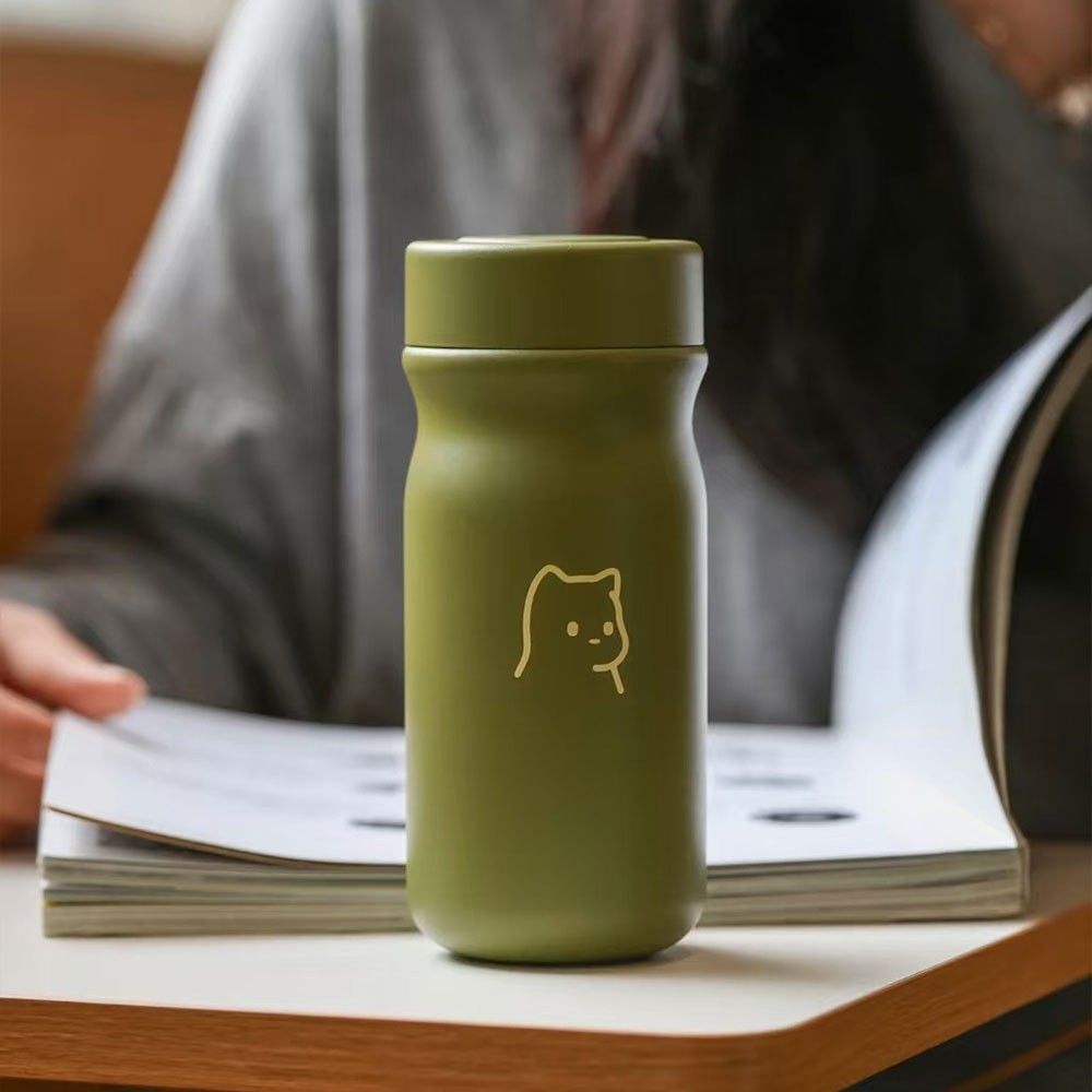新款可爱简约猫咪保温杯女生高颜值便携小巧水杯带茶隔现货批发