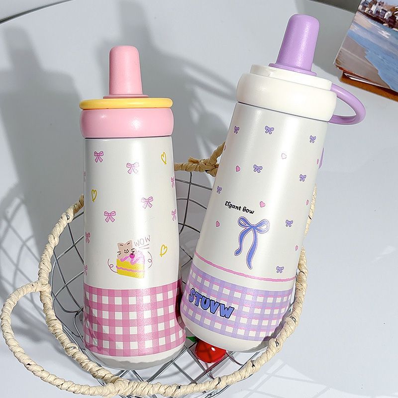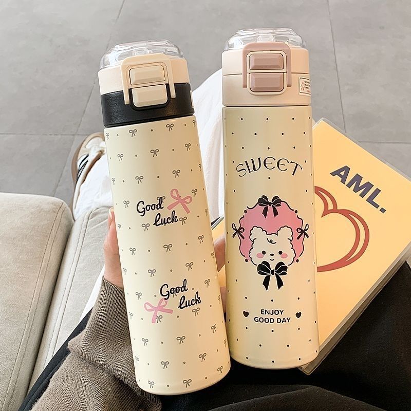 2025新型シンプルアニメコップ軽量携帯ワインボトル保温カップ学生高颜値コーヒーミルクカップ
