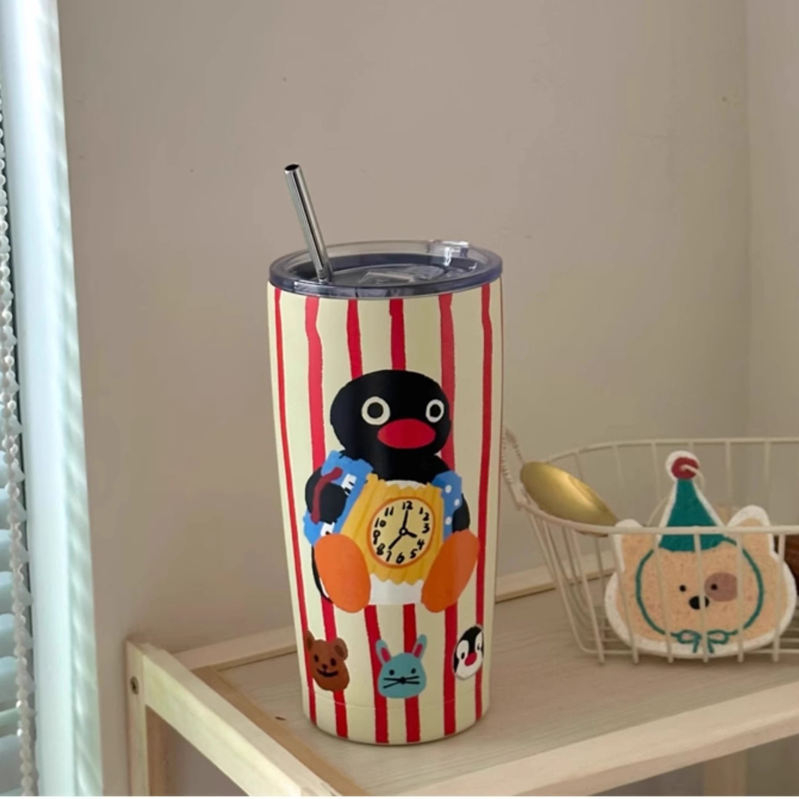 新しい漫画ポータブルステンレス鋼魔法瓶カップかわいい男性と女性の学生高価値イン大容量ストローカップ