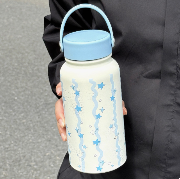 女性用のかわいい星型魔法瓶カップ、トレンディな大容量ポータブルカップ、ステンレス製ウォーターカップ、ポータブルケトル