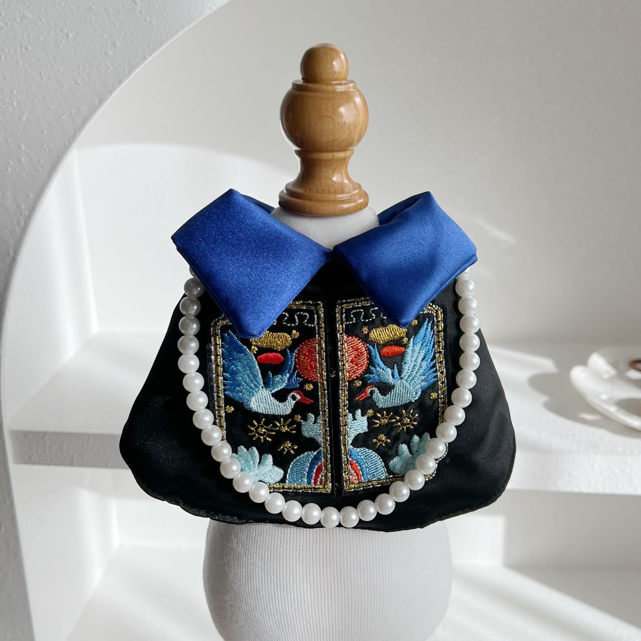 犬服ベスト、暖かい秋冬ペット猫用リード付き服、花柄中国風唐装、犬用新年服