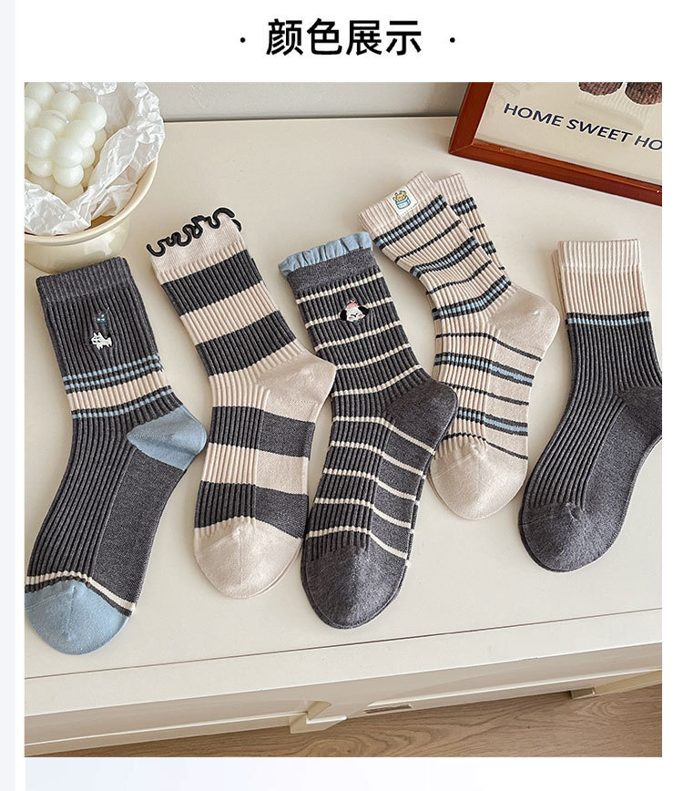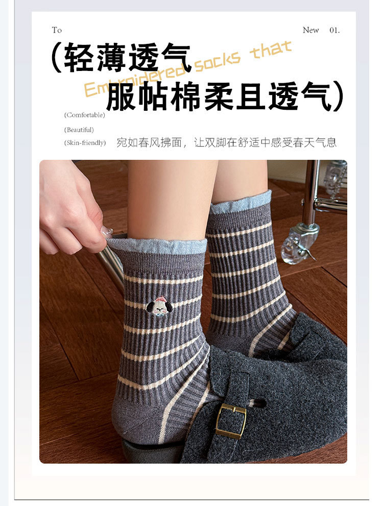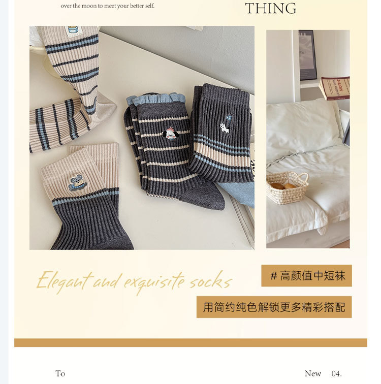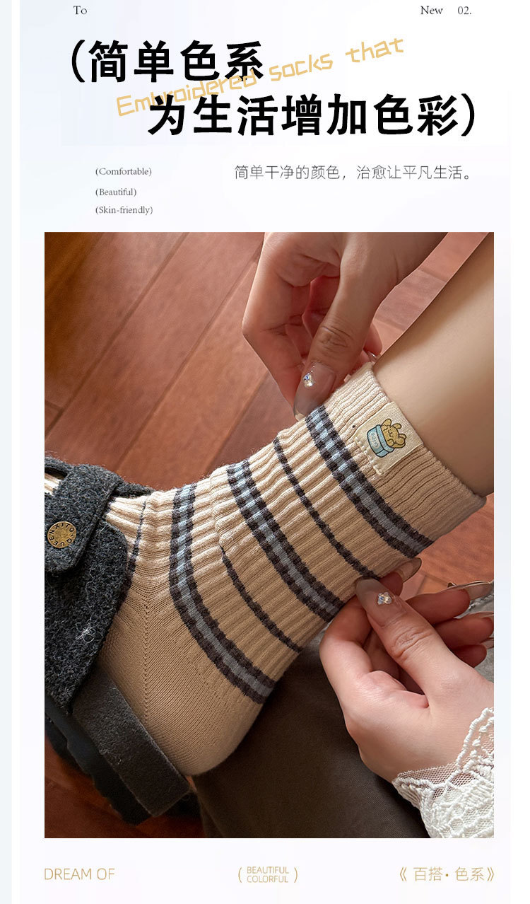 刺绣卡通日系袜子女士棉质甜美少女长袜学生百搭春秋无骨中筒袜子