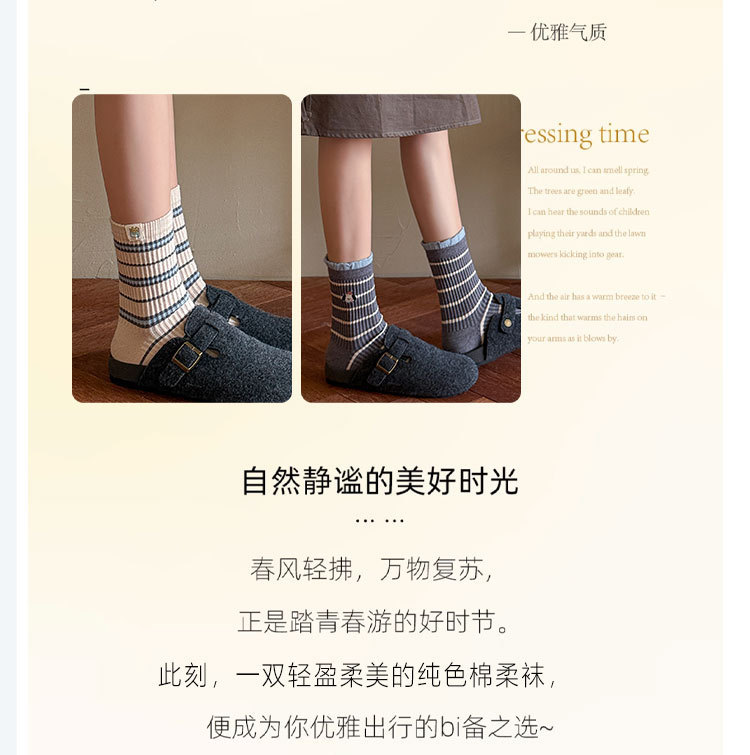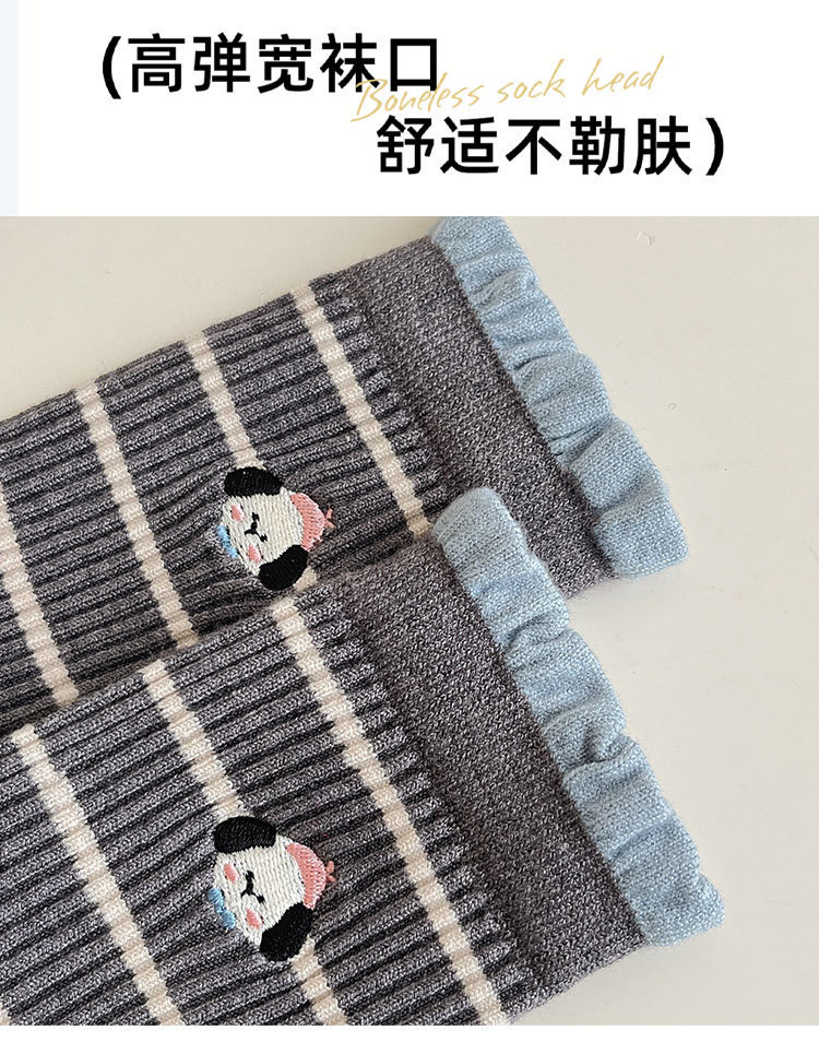 秋冬款保暖袜子女灰蓝色条纹中筒袜厚实可爱日系花边ins潮长筒袜