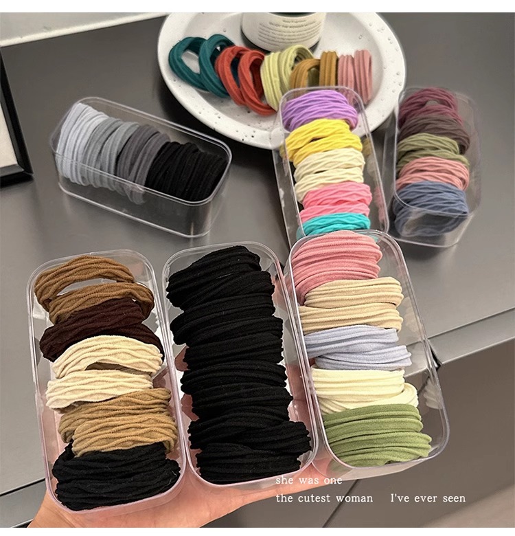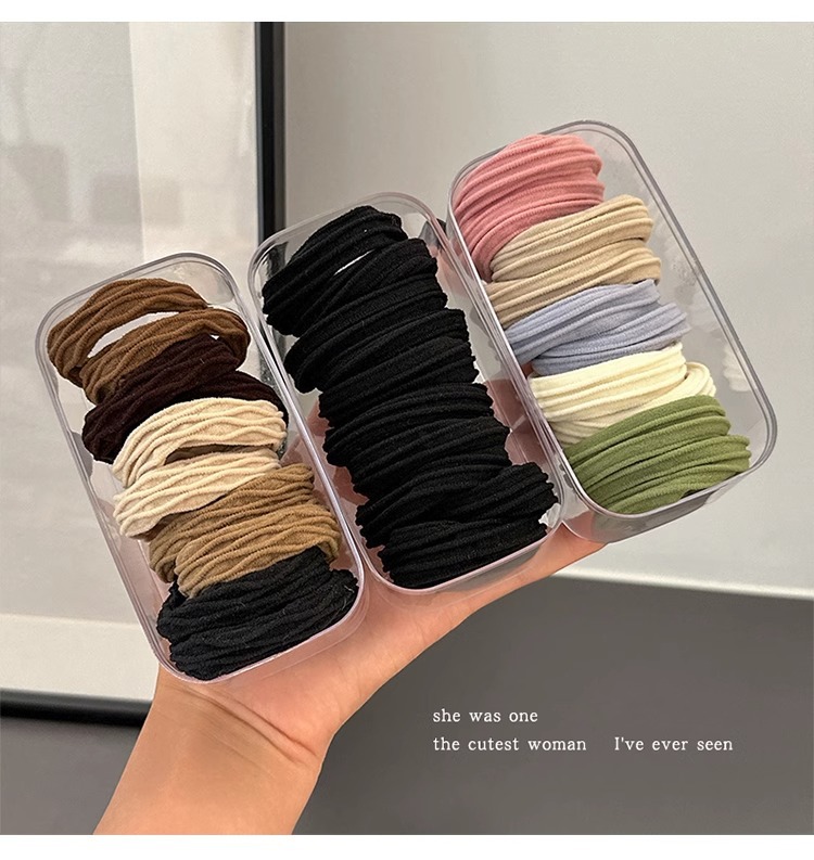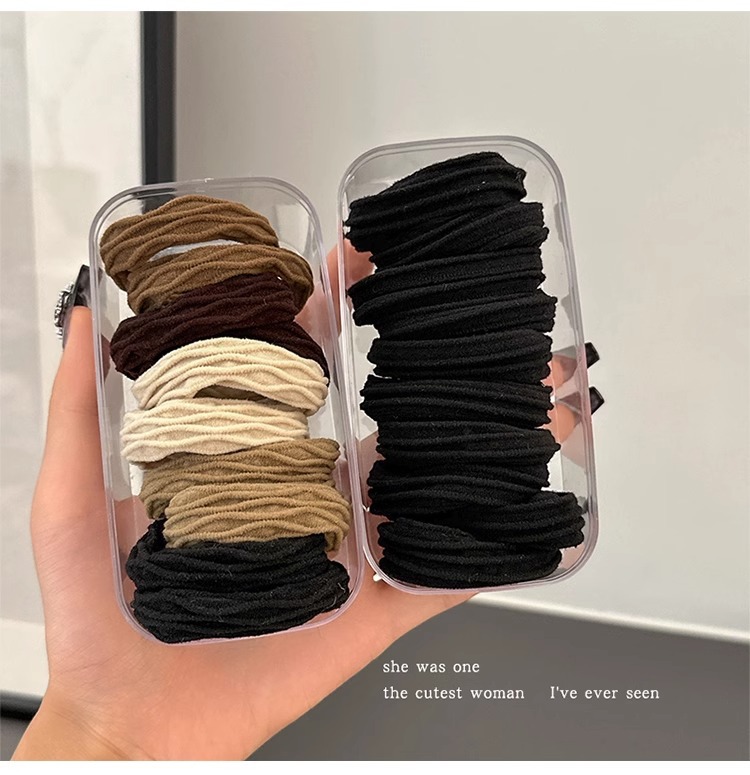 【クロスボーダー热い贩売】ヘッドロープ50本缶入り2色グラデーション髪ロープ黒シュシュ高弾力ゴムバンド