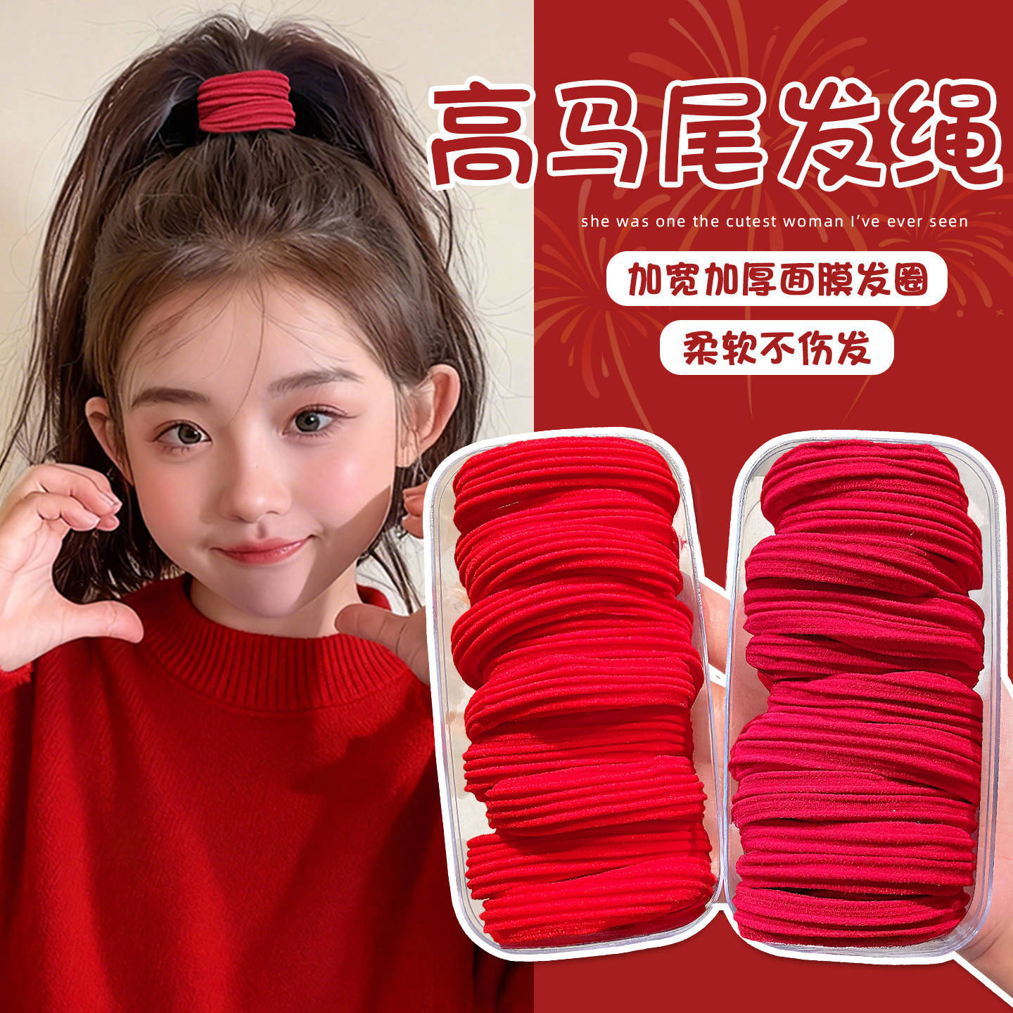 高马尾发绳2026新年红色高弹力耐用橡皮筋女扎头发圈头绳皮套头饰