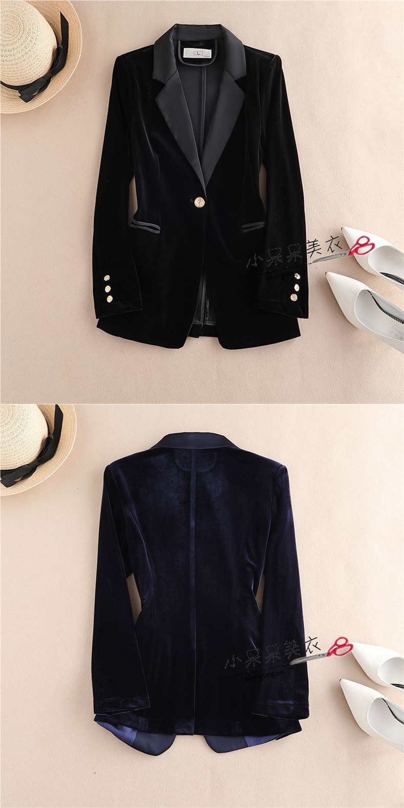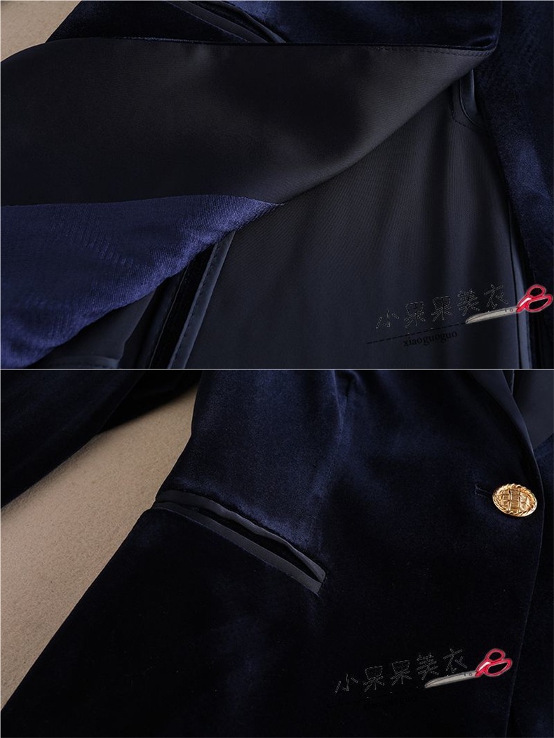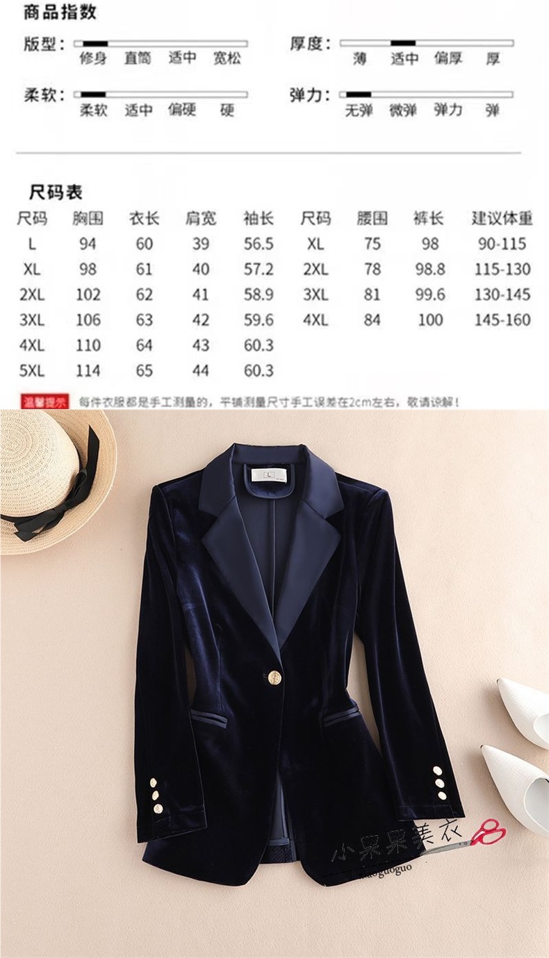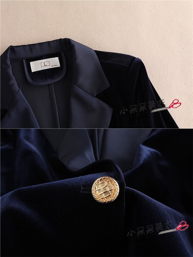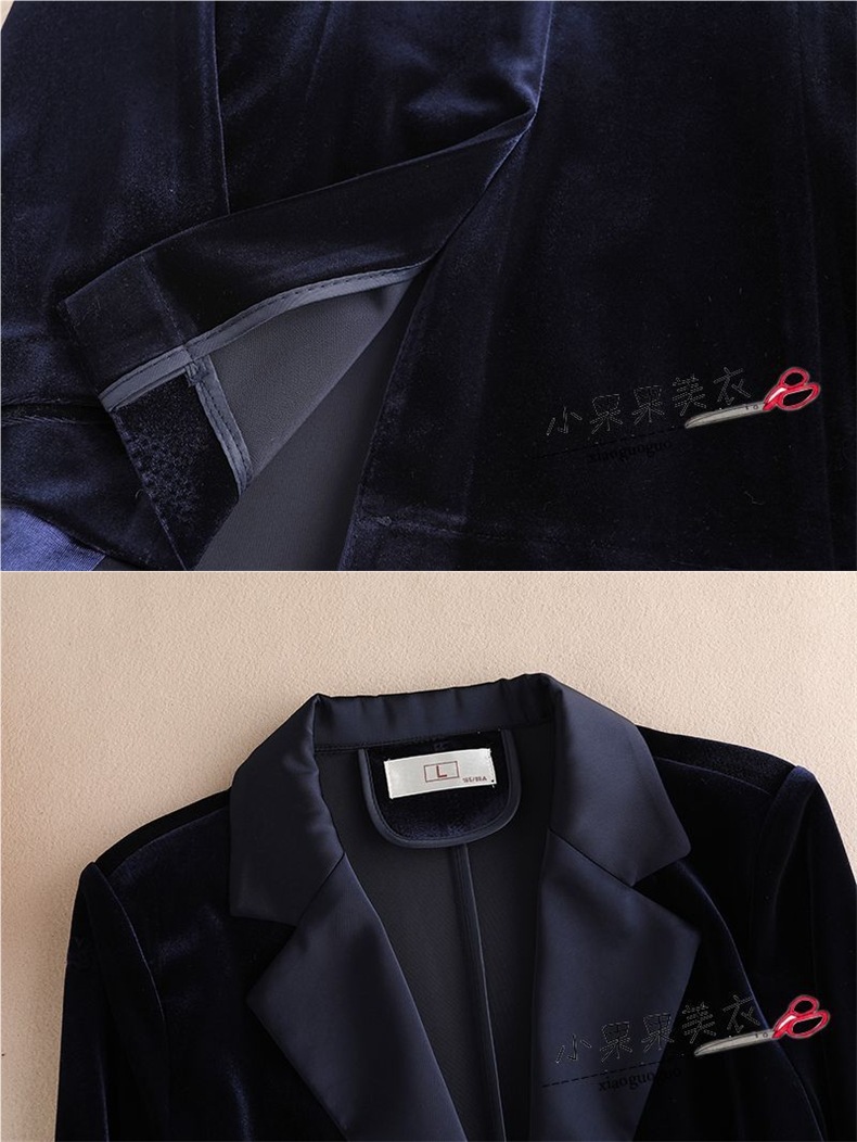 金丝绒小西装外套女装春秋职业时尚气质垂感黑色西服套装