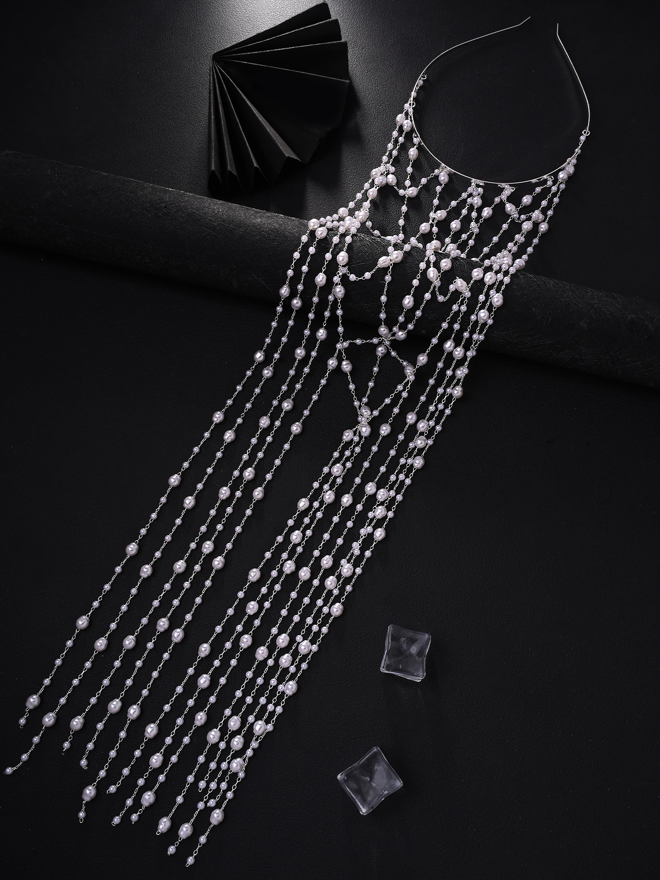 跨境新款珍珠流苏发箍气质新娘网状发链设计感配饰女headband