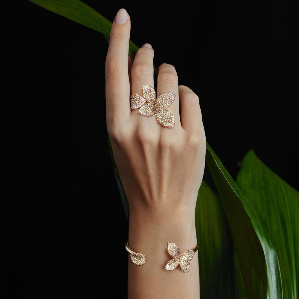 新しいクロスボーダー花びらオープンリングブレスレットセット女性のヨーロッパとアメリカのシンプルなフルダイヤモンドフラワーブライダルウェディングブレスレット