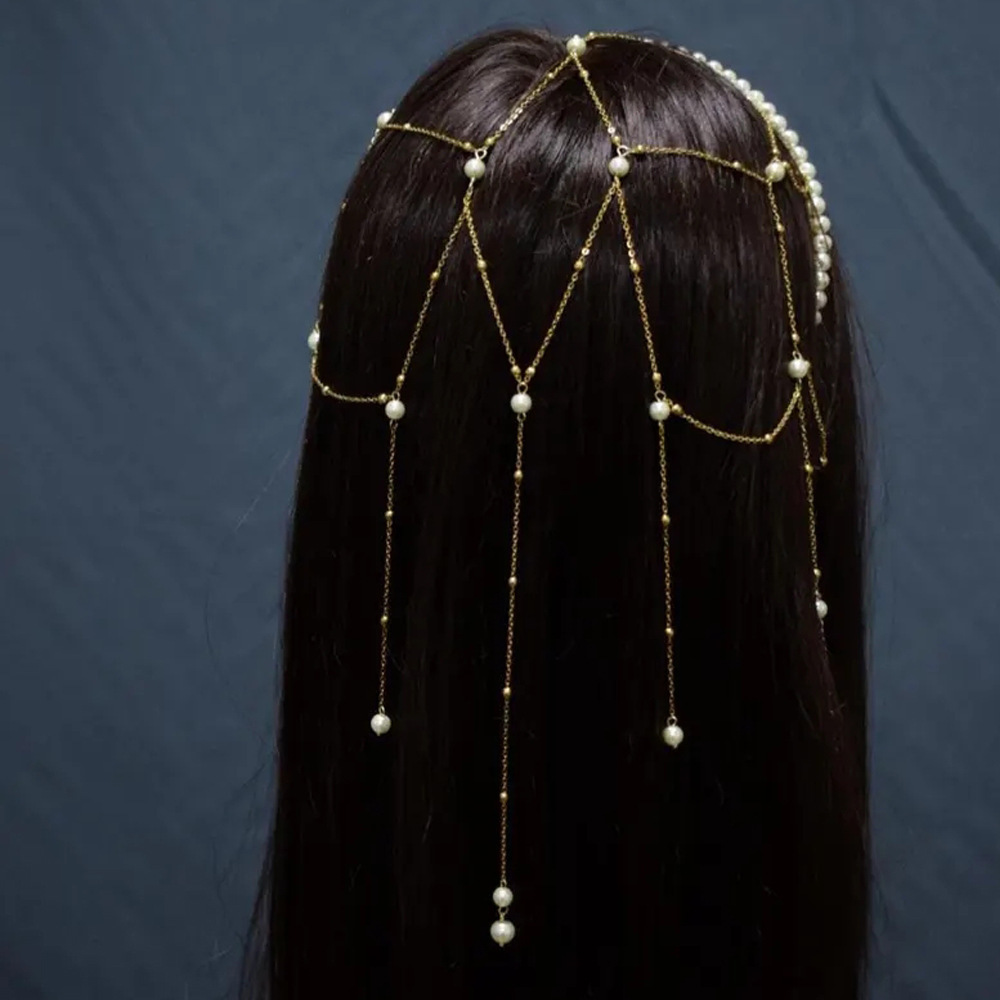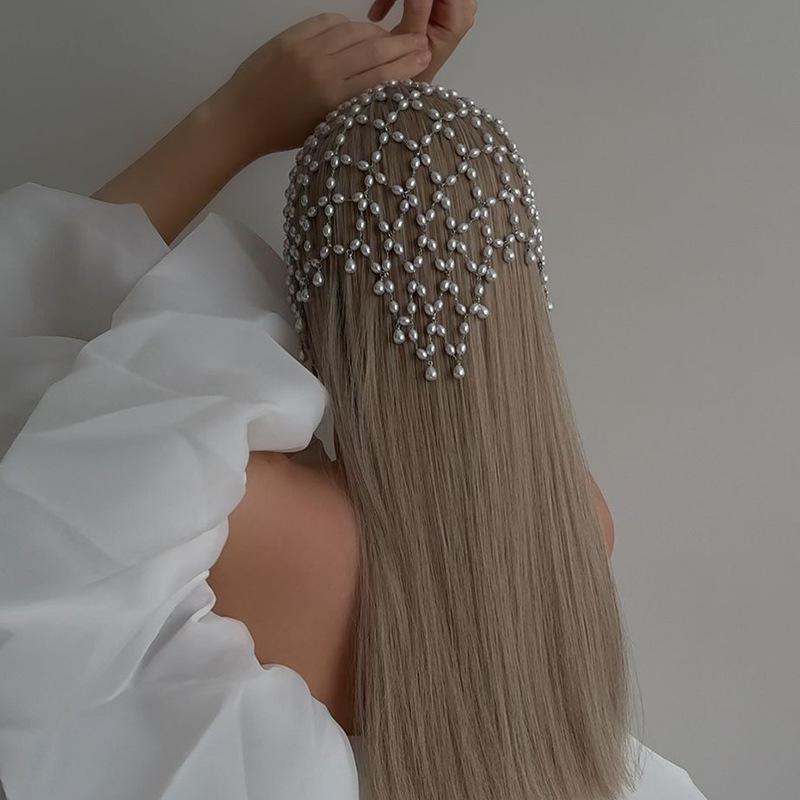 亚马逊热销珍珠发饰气质潮流网状头链派对时尚配饰女Hair chain