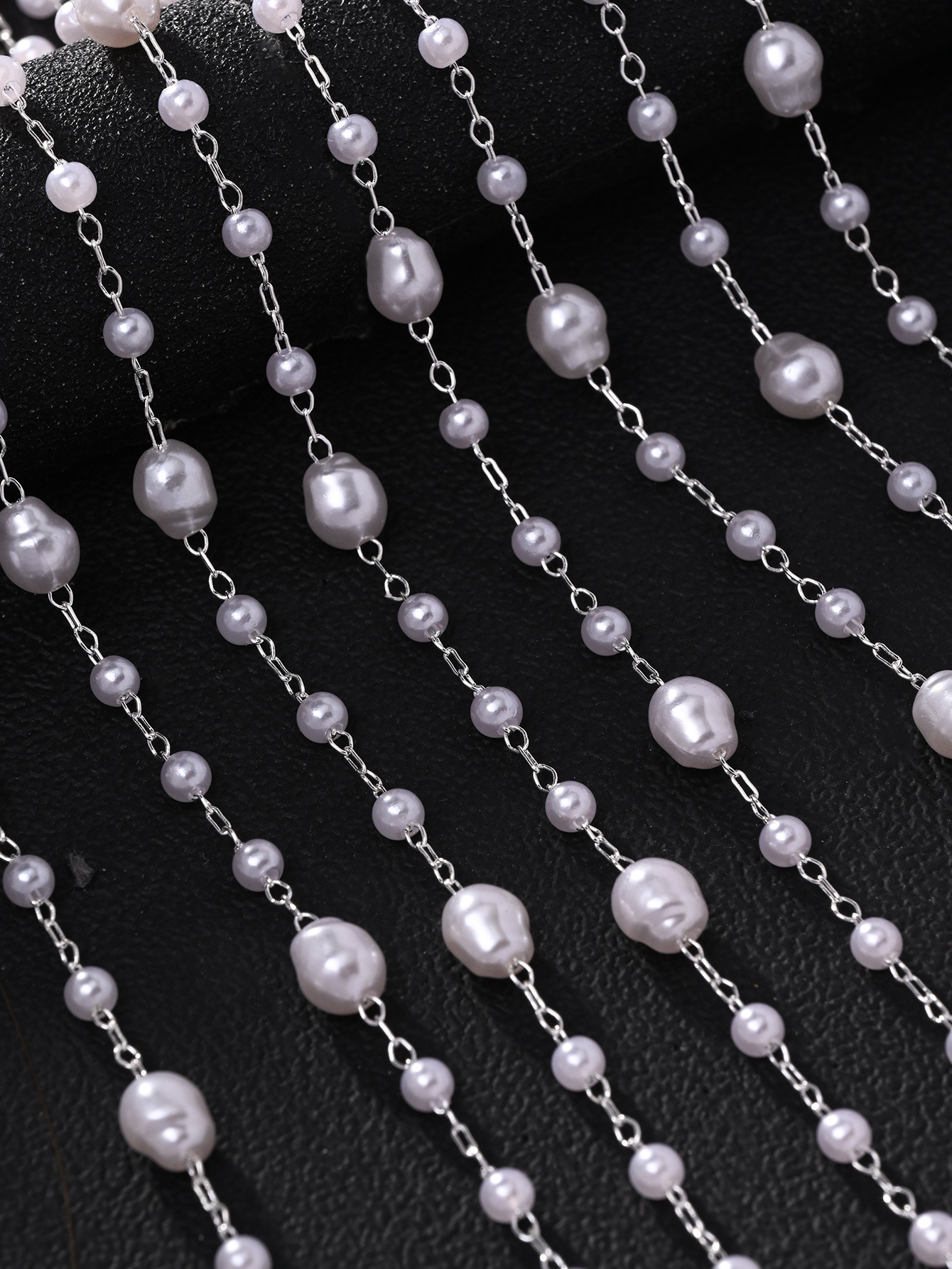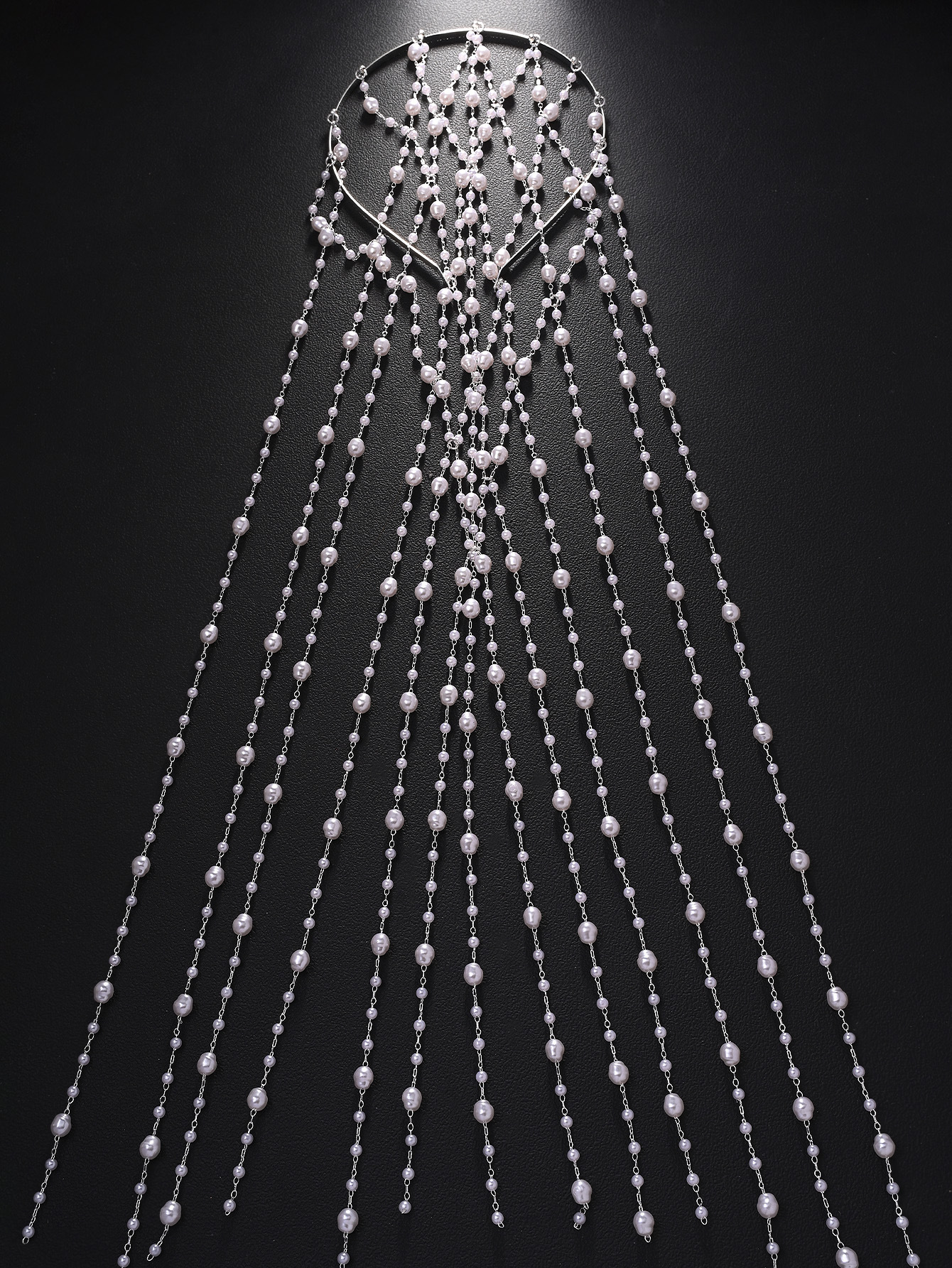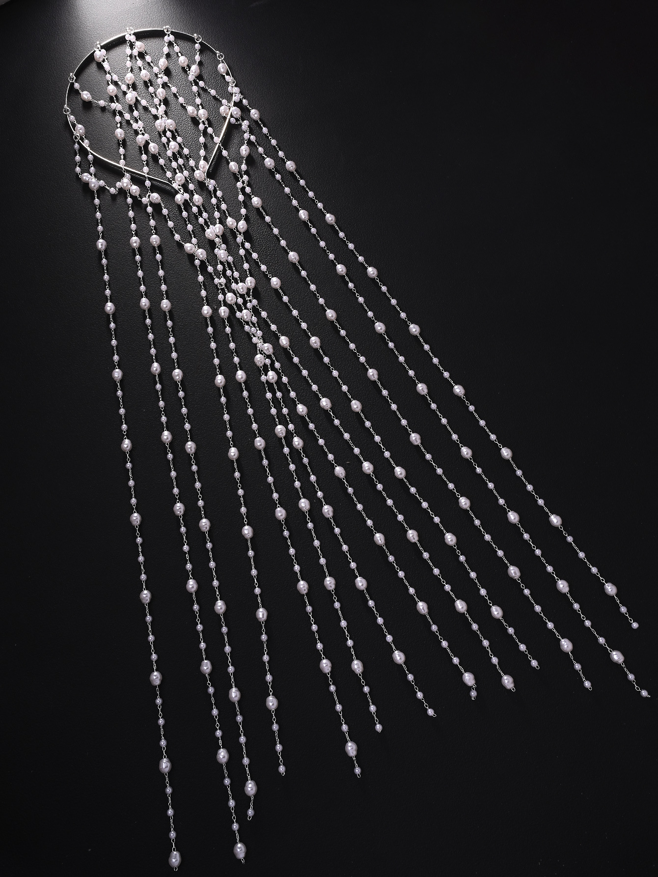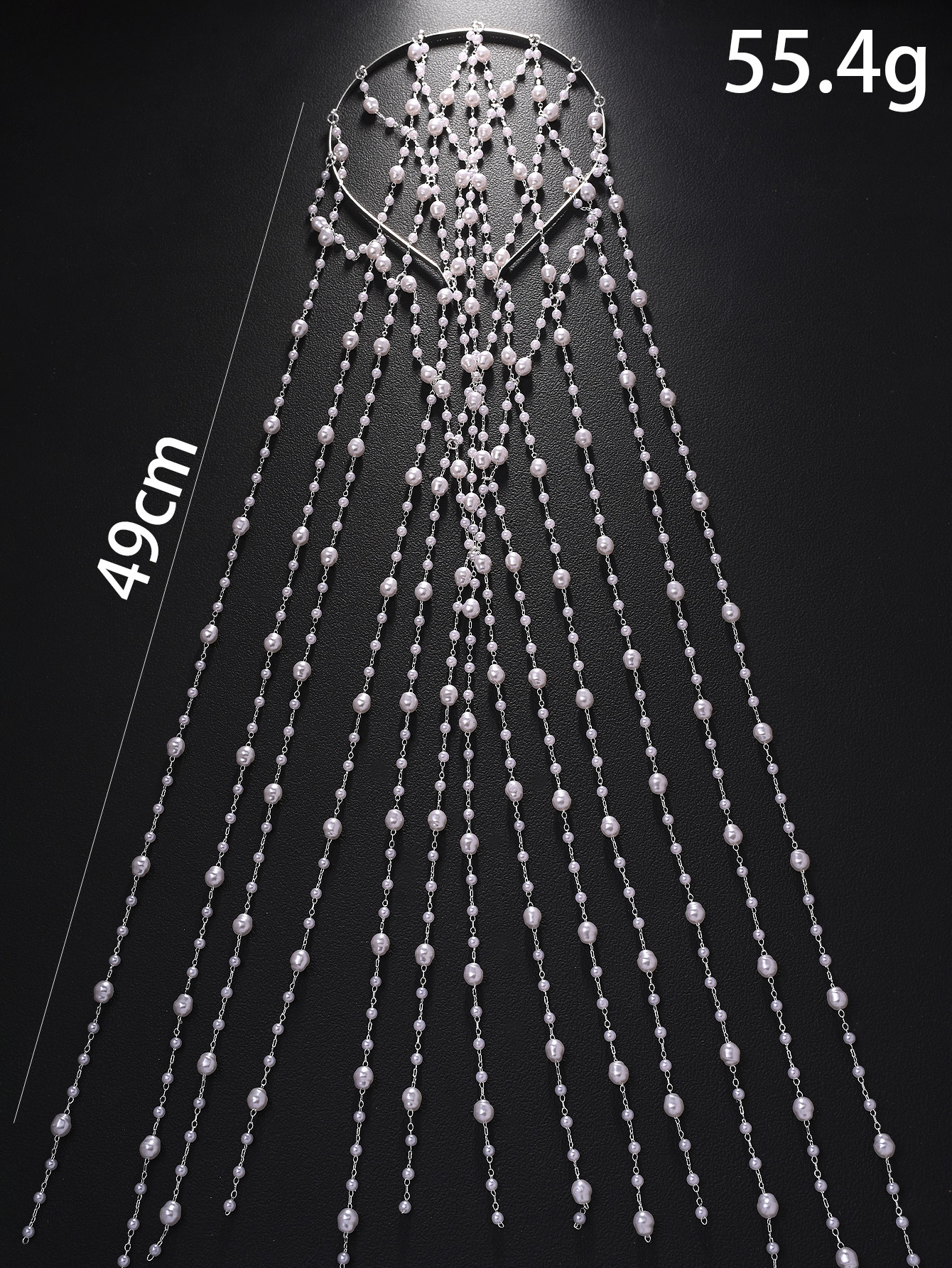 跨境爆款镶钻珍珠发链流苏发饰宴会百搭发饰女小众高级hair chain