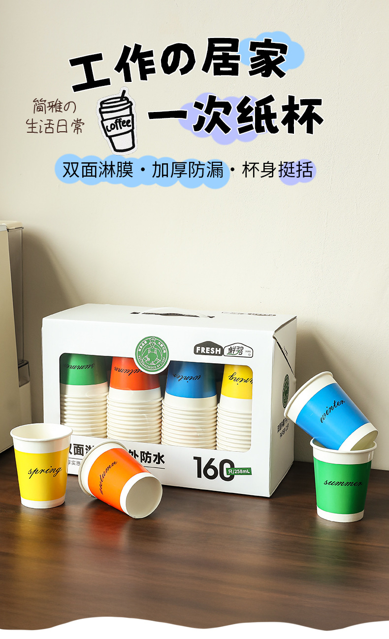 纸杯一次性家用待客办公商务冷热饮杯子加厚原木浆多色一次性纸杯