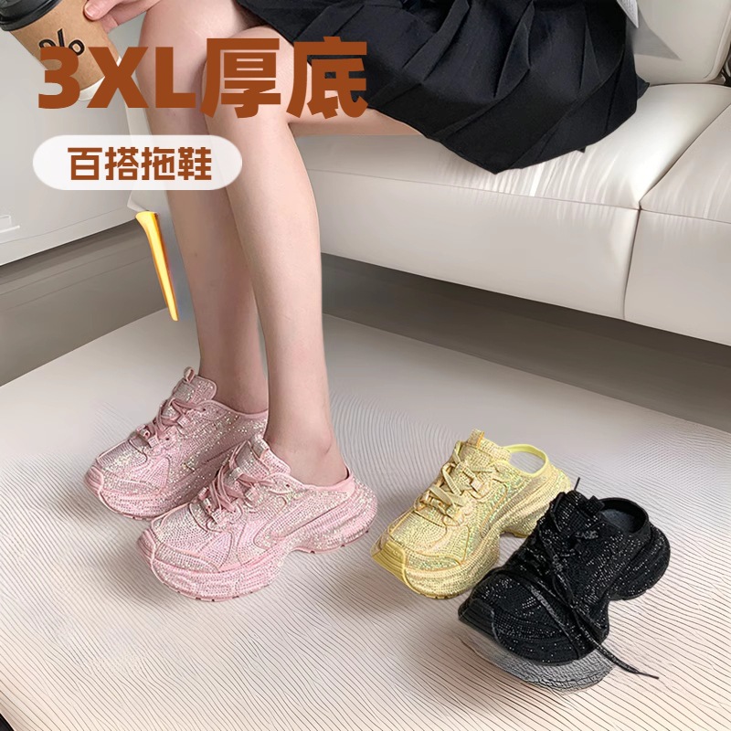 2024 夏の新スタイルフルダイヤモンドパリ第 9 世代 3XL お父さん靴カジュアル厚底多用途スリッパ女性の世代の快適さ