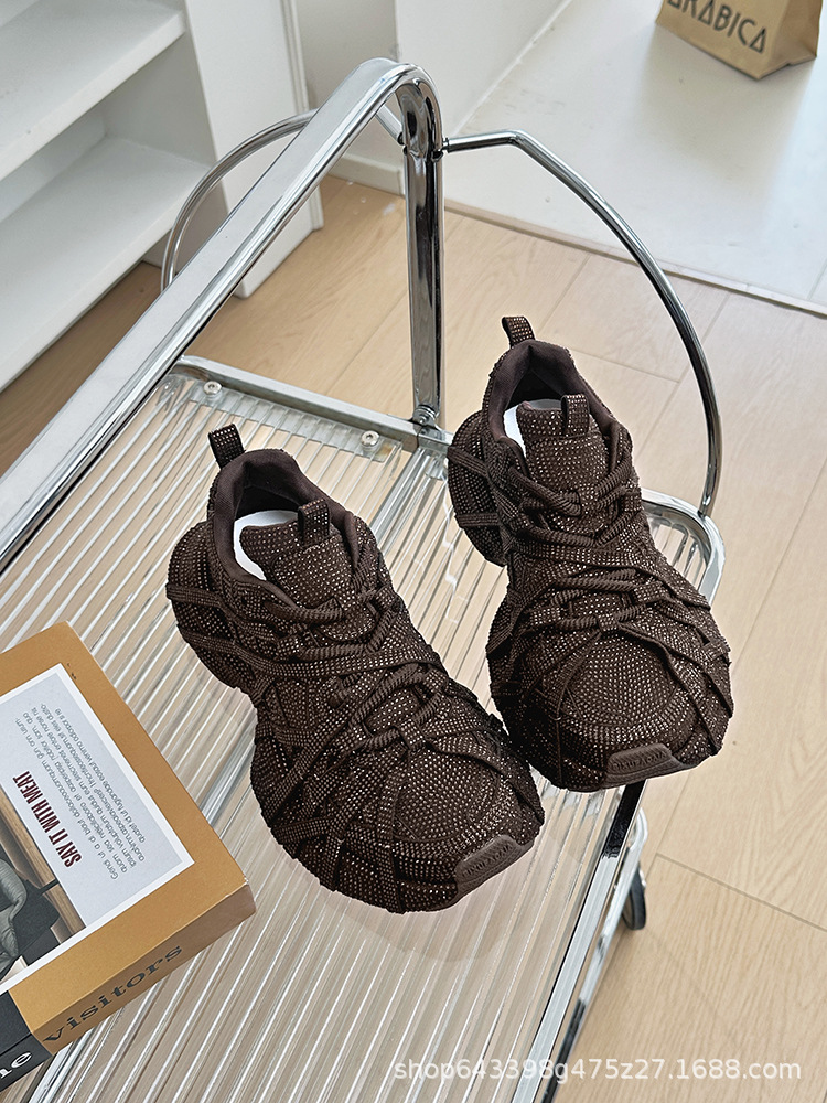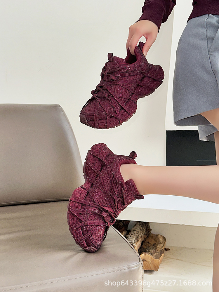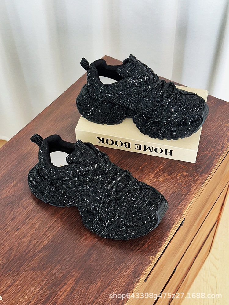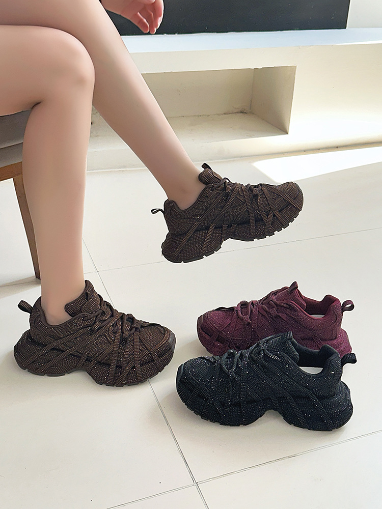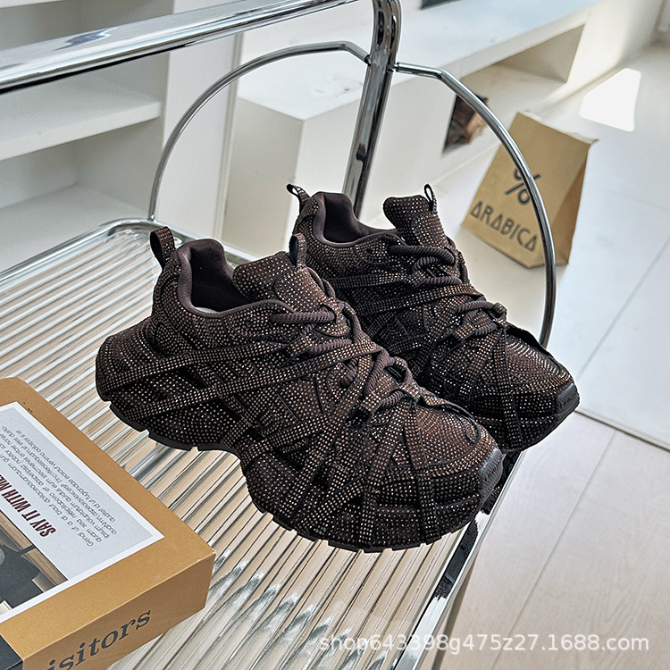 ヨーロッパのフルダイヤモンドダッドシューズ女性用 2025 春と秋の新しい厚底スポーツストリートスポーツカジュアルシューズトレンディで多用途