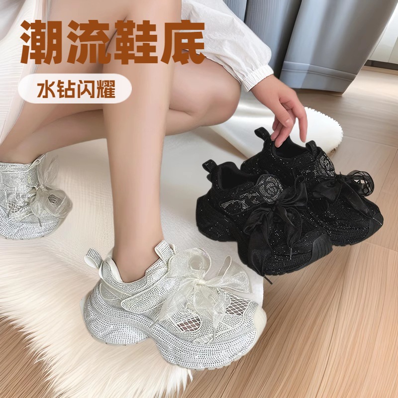 定制款大码满天星水钻老爹鞋女2026新款厚底内增高休闲时尚运动鞋
