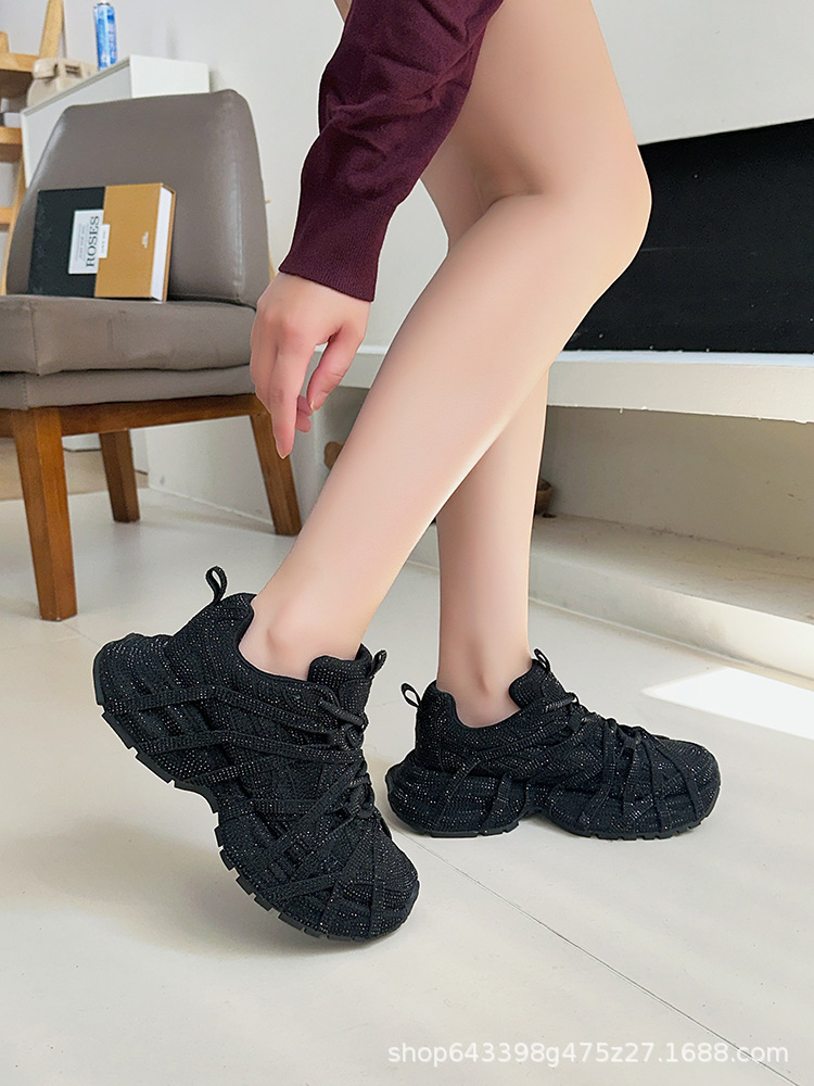 老爹鞋ins超火绑带蜘蛛网水钻满钻满天星炸街松糕运动小个子女鞋