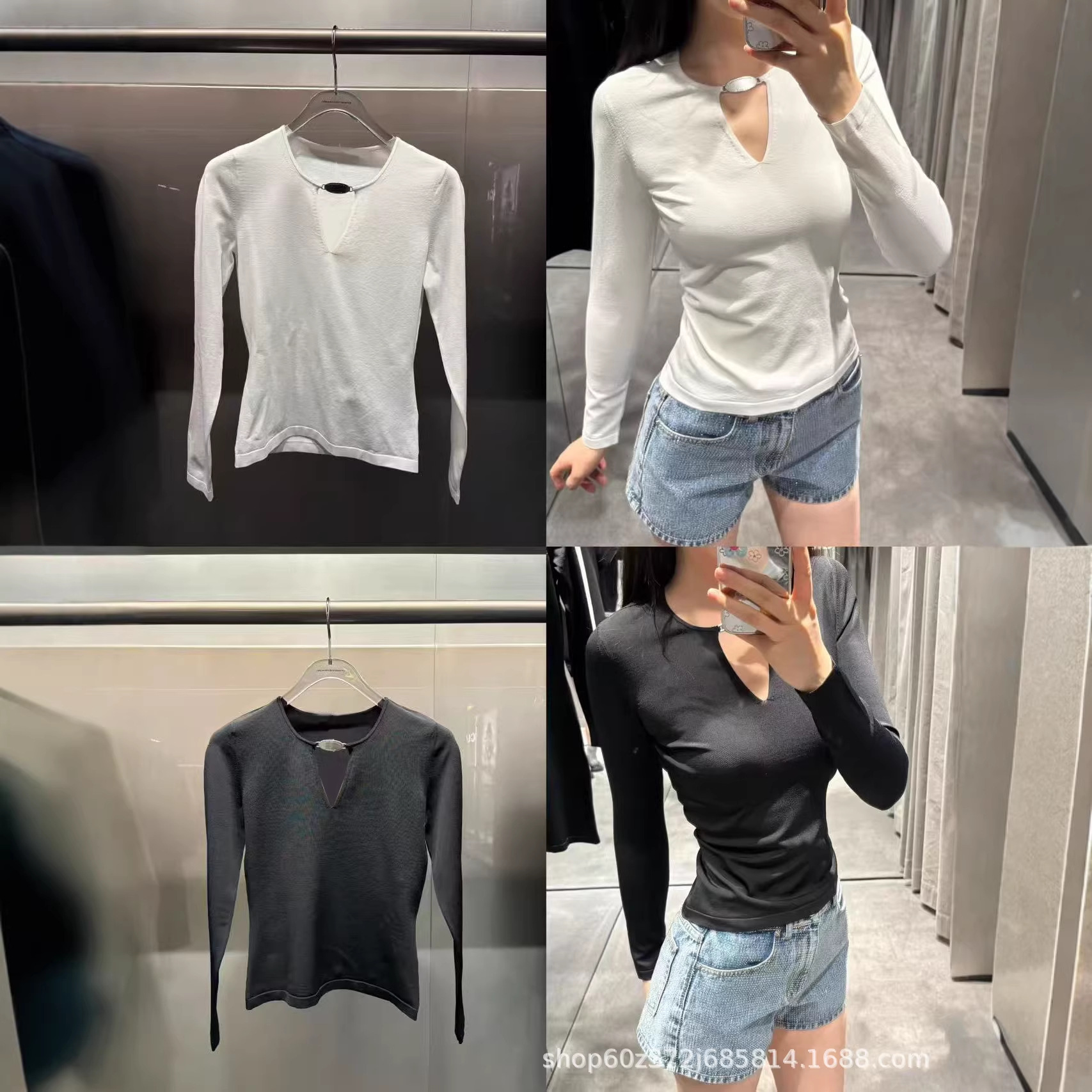 2026早春新款小众设计金属装饰小V领针织套头长袖打底上衣女
