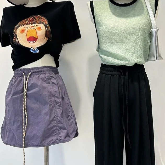 アメリカンカジュアルワークウェアスカートレディースウエストゴムAラインルーズスリムショートパンツスカートアンブレラスカートハイウエスト春夏レディース