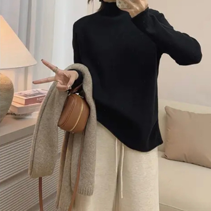 90-200斤加厚保暖显瘦百搭卷边小半高领针织毛