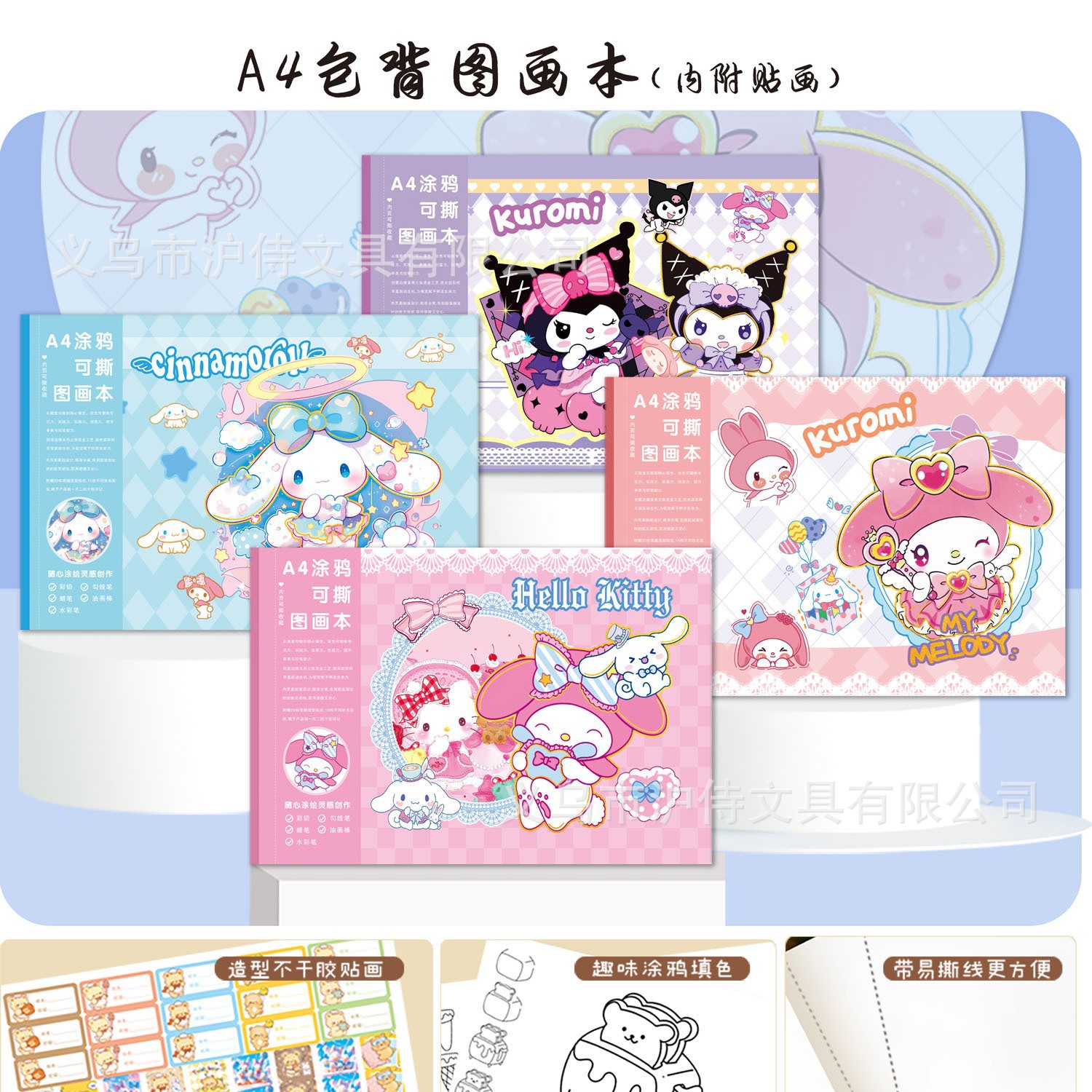 新款三丽鸥图画本创意库洛米美乐蒂戴贴纸绘画本学生高颜值素描本