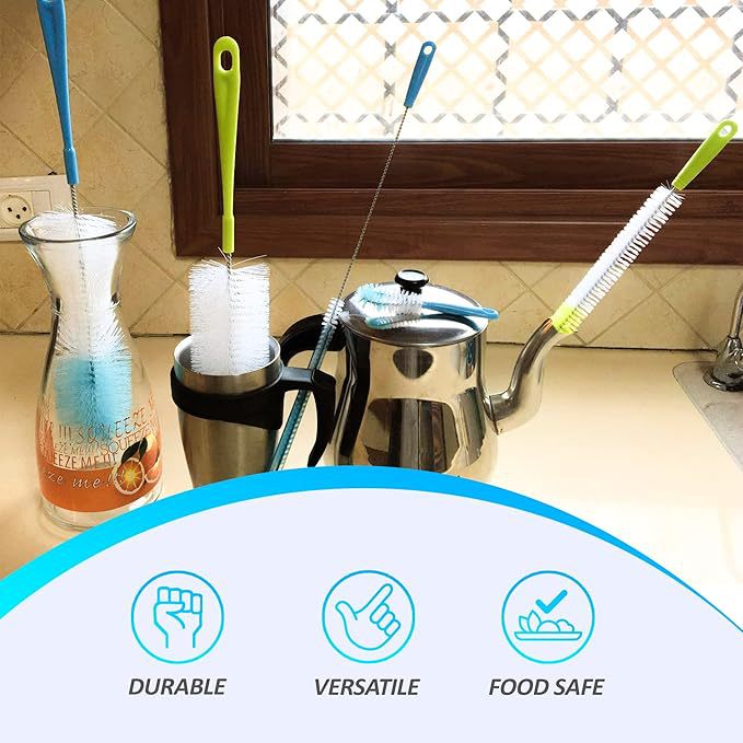 Amazonベストセラーの長柄カップブラシ、ボトルブラシ、長柄魔法瓶カップ洗浄ガラスティーカップブラシ、ボトルブラシセット