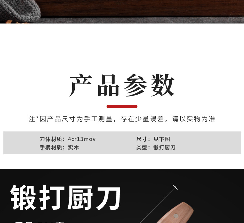 超锋利菜刀炮弹钢锻打切片刀家用厨房切肉刀厨师商用专用手工刀具