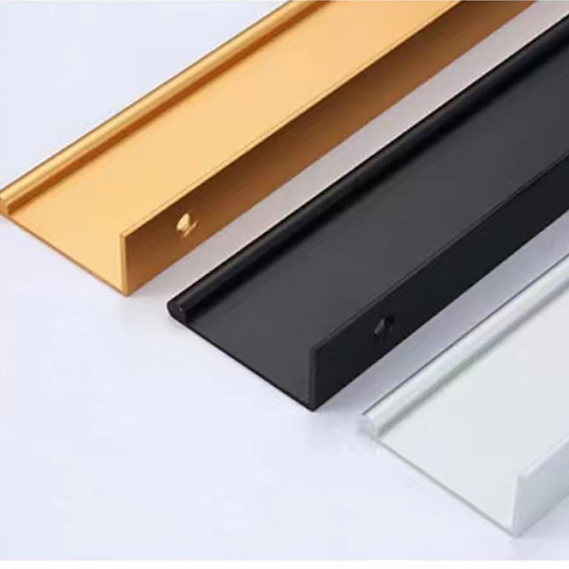 免打孔暗扣弧形隐形封边太空铝长拉手太空铝合金橱柜衣柜门缝把手