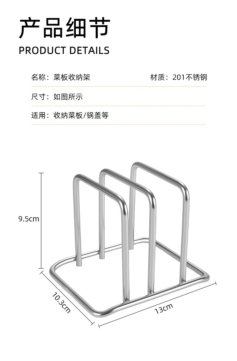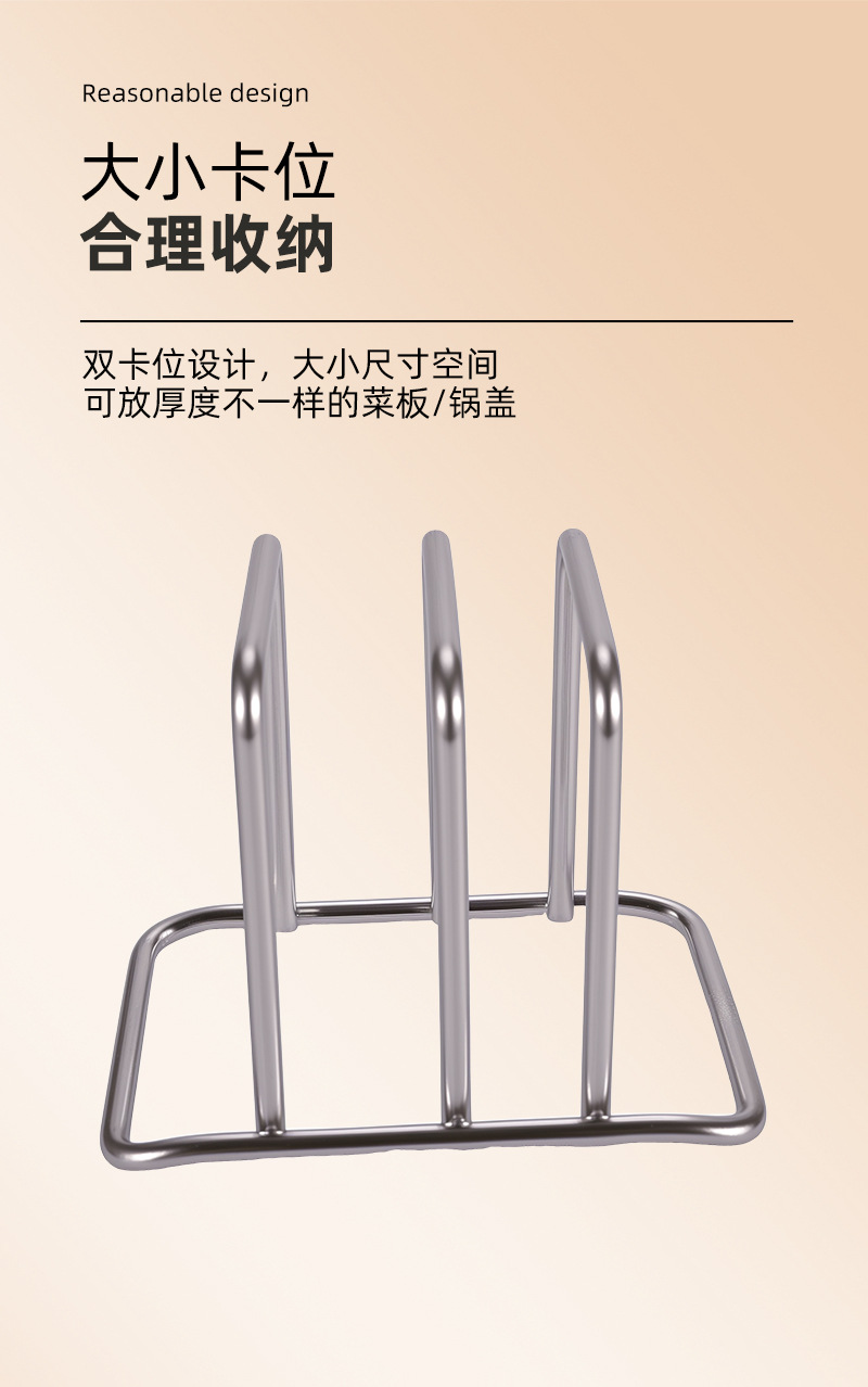 厨房置物架304不锈钢砧板架菜板铸铁锅盖架多功能厨具加粗简约批