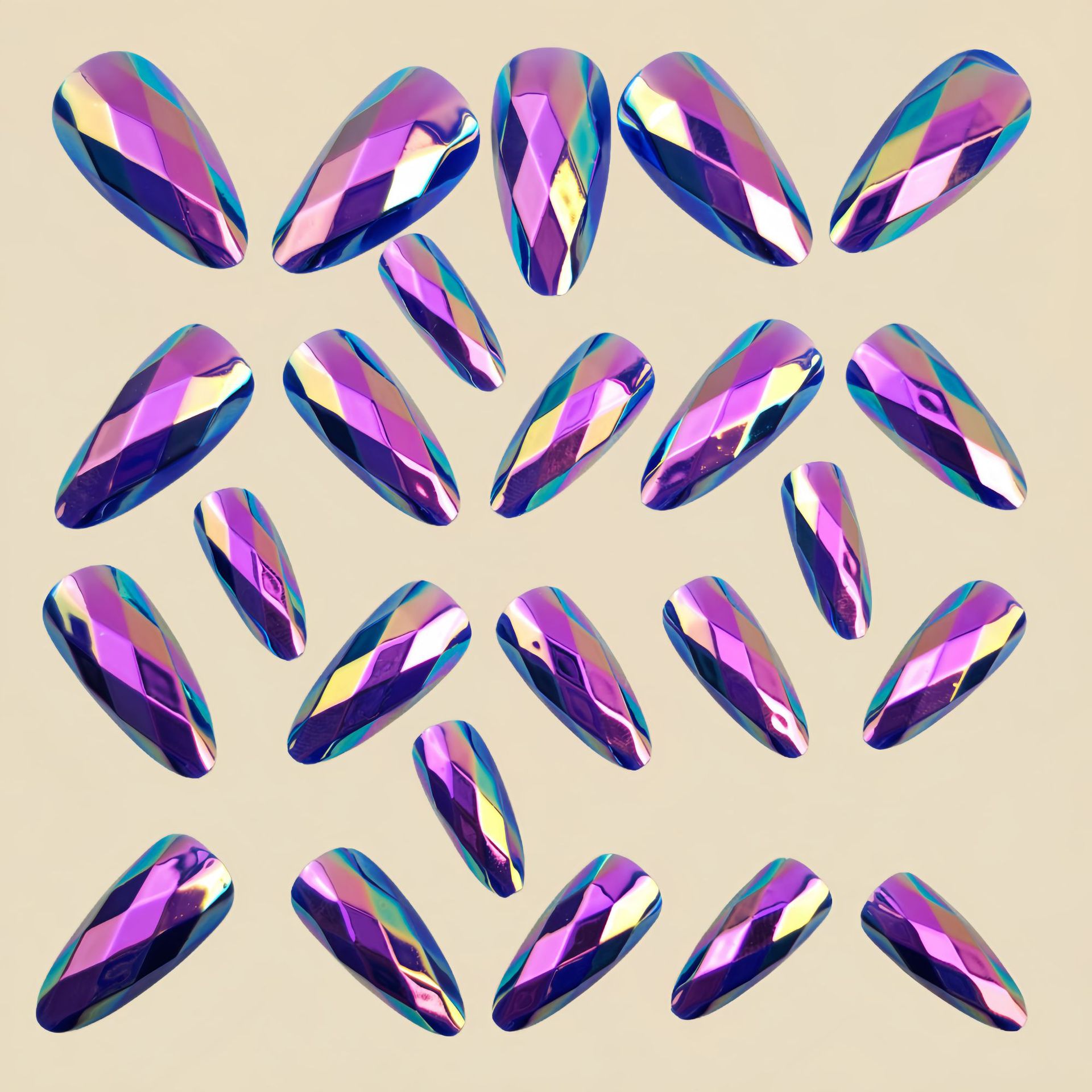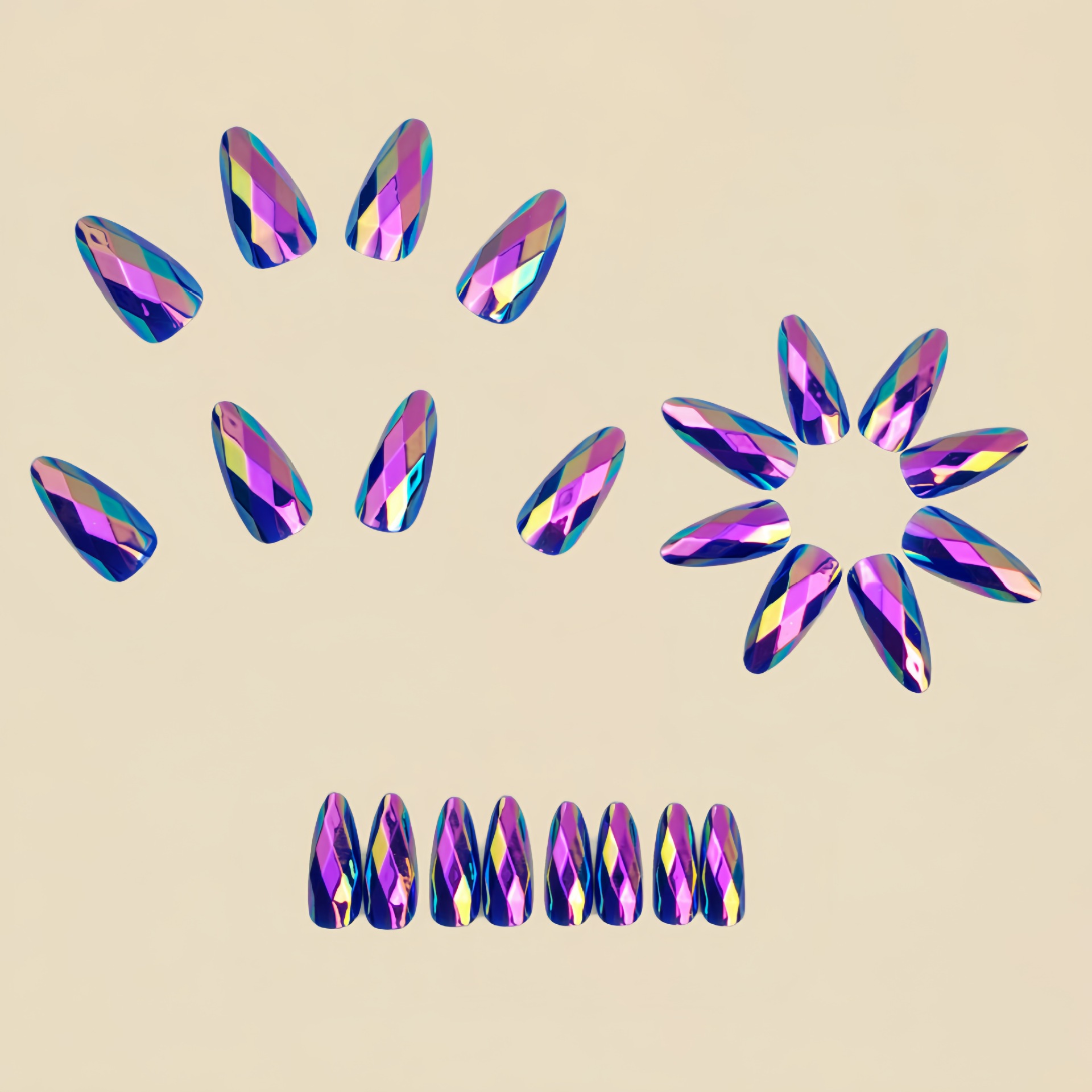 3D立体多面菱形电镀金属亮面美甲时尚欧美ins风圆头杏仁甲紫色系
