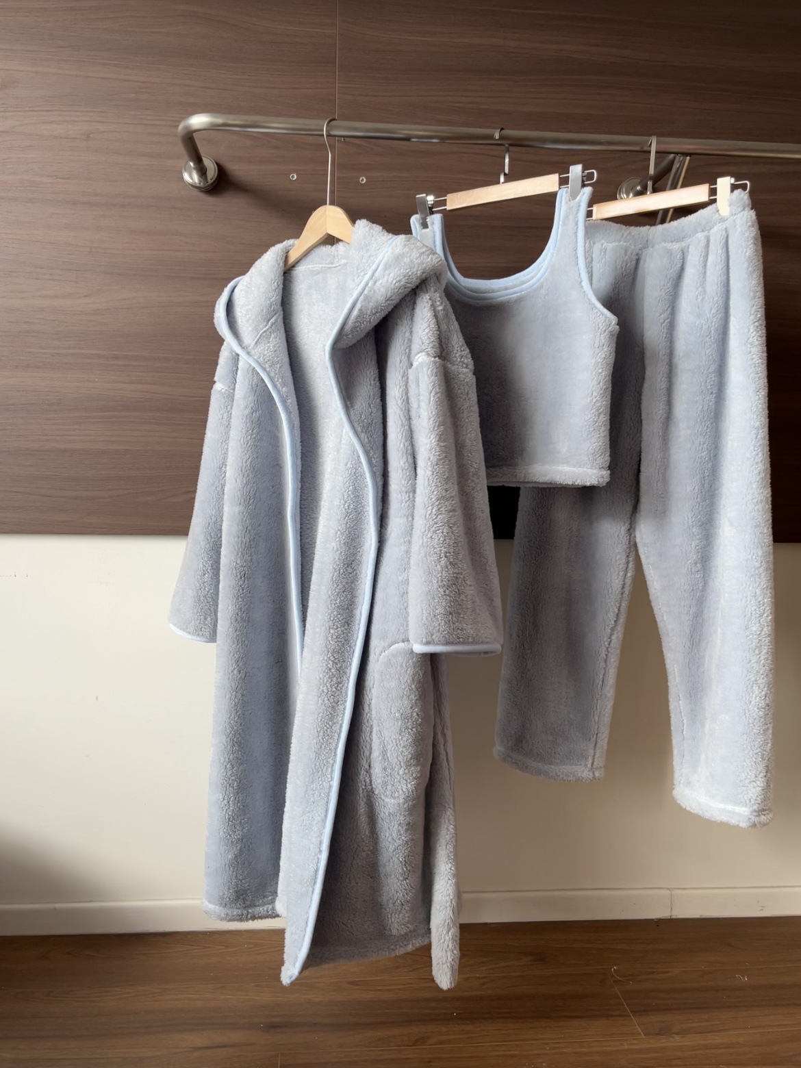 【三件套】实拍加加加厚睡袍家居服毛绒宽松舒适保暖睡衣纯色套装