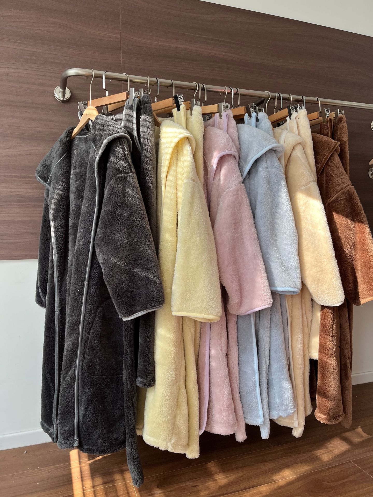 【实拍】秋冬季雪粒绒可爱碎花毛绒加厚家居服睡衣袍连帽拉链保暖