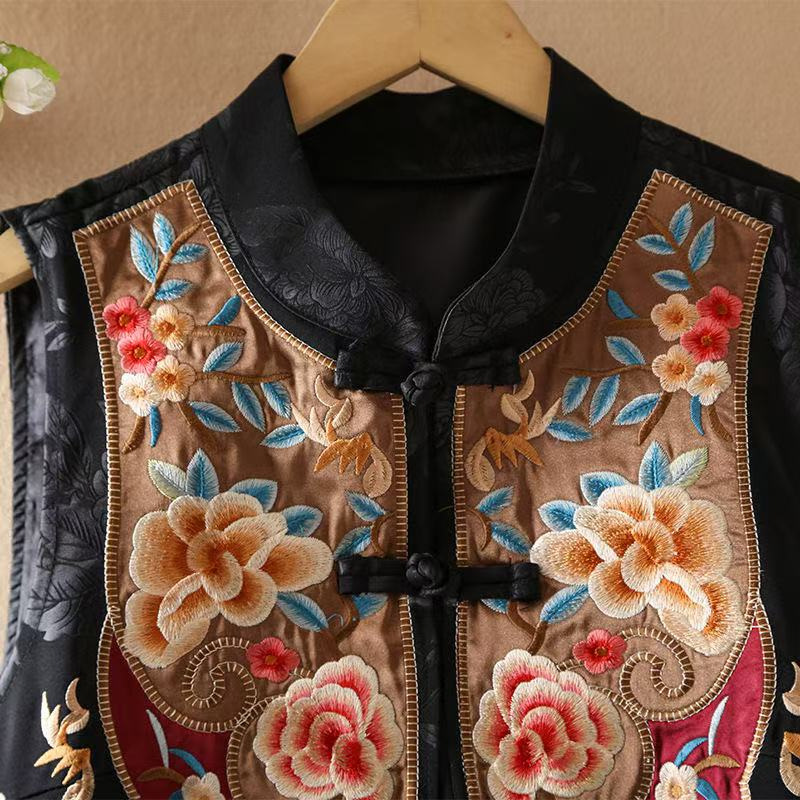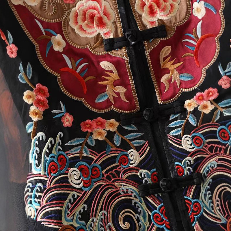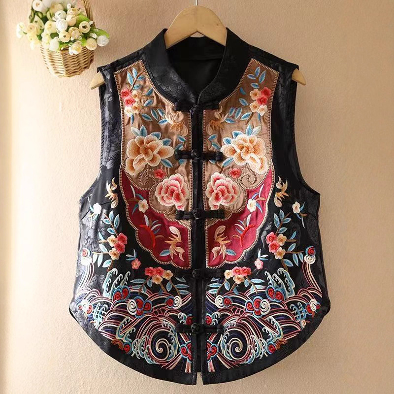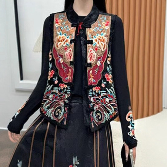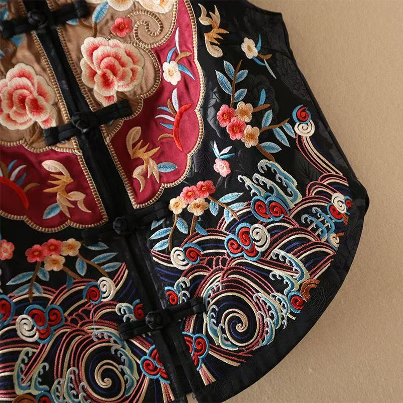 春秋の新作、中国風のボタン留め、レトロな刺繍、民族風、精巧な刺繍のベスト、ジャケット、背当て、マント
