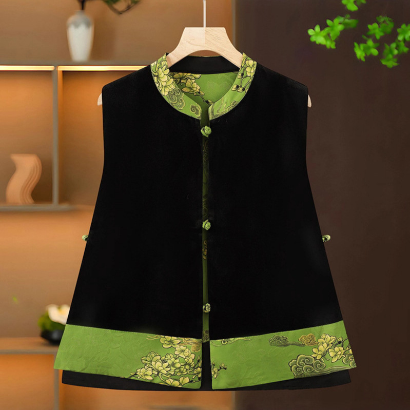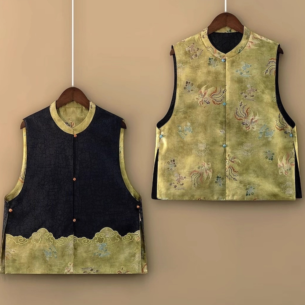 2025早秋款新中式复古拼接丝绒双面穿马甲时尚背心上衣坎肩