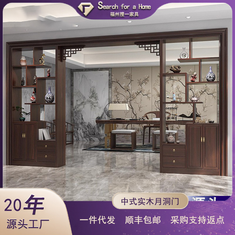 無垢材の玄関仕切り、リビング、オフィス用収納棚、レストランの仕切り装飾、新中式ホテルの月洞門