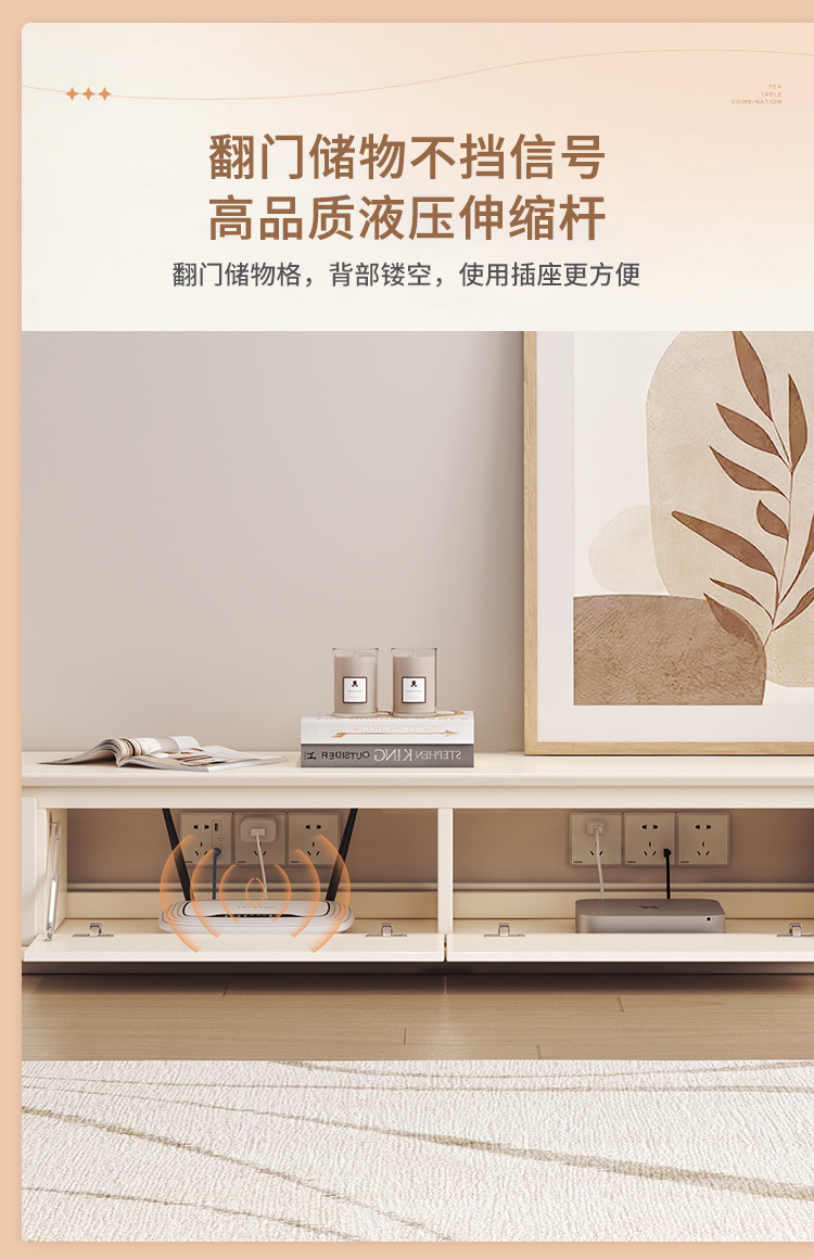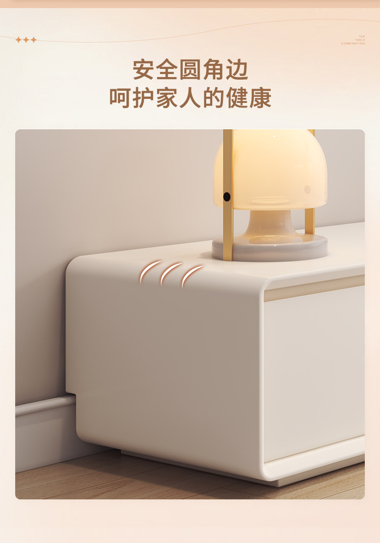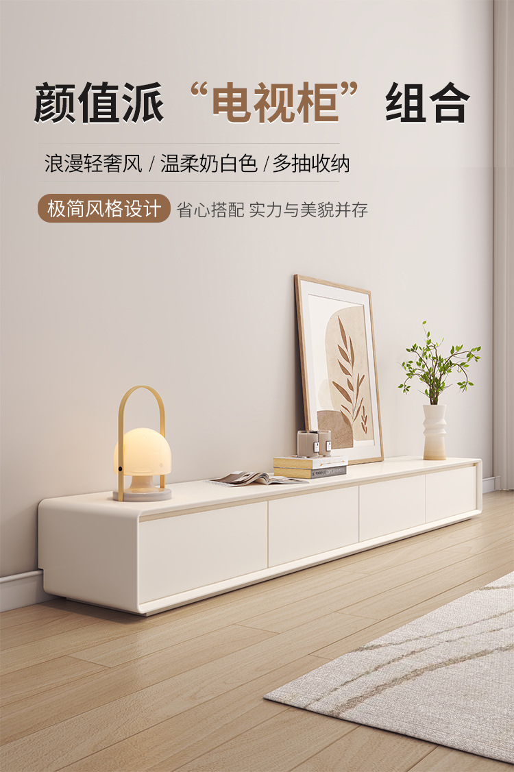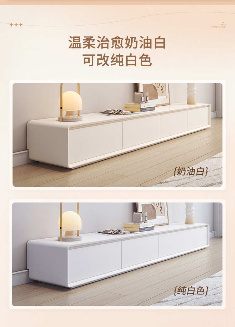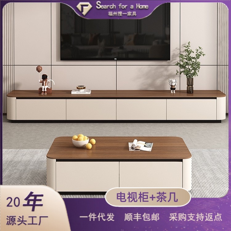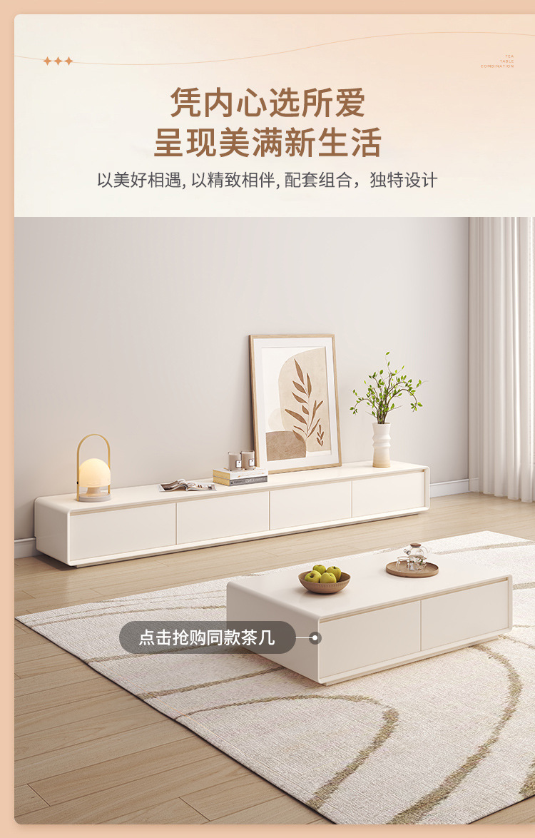 奶油风电视柜茶几组合现代简约实木圆角客厅家用落地影视柜地柜