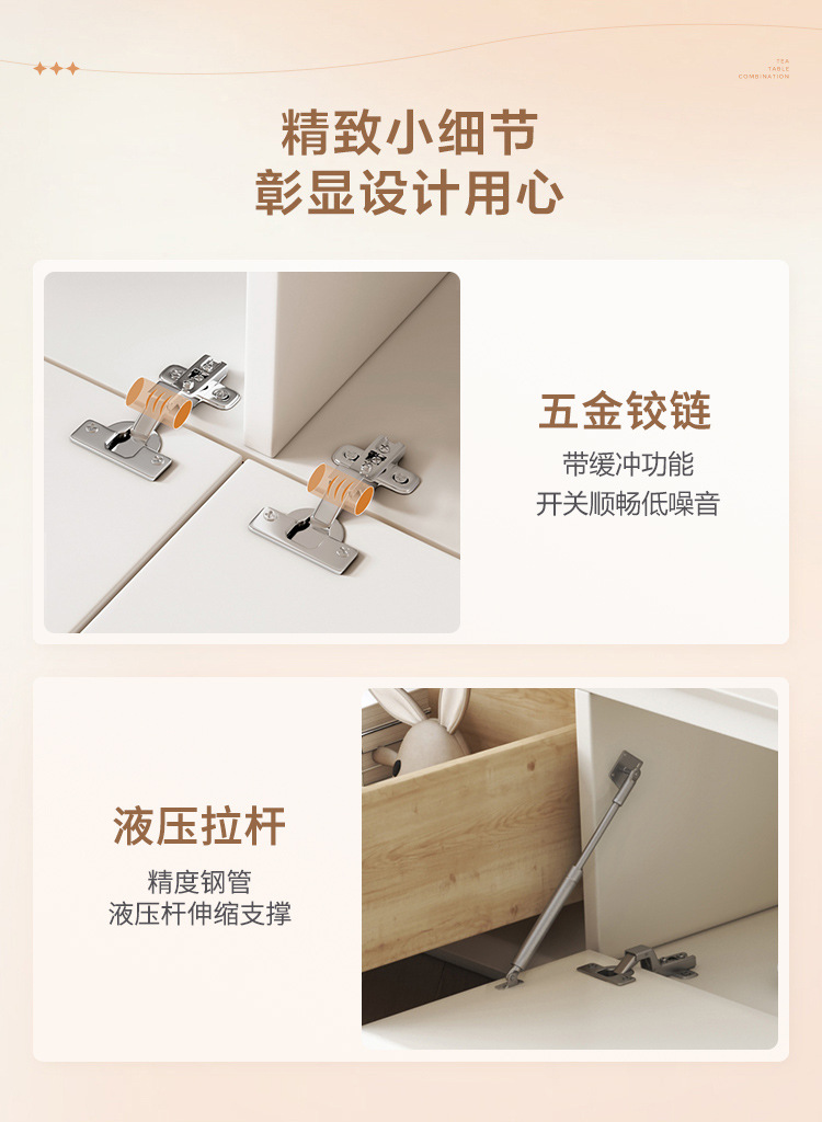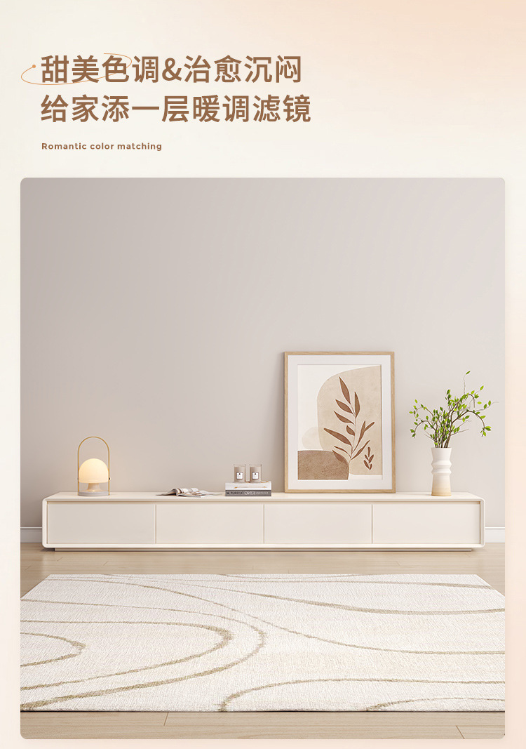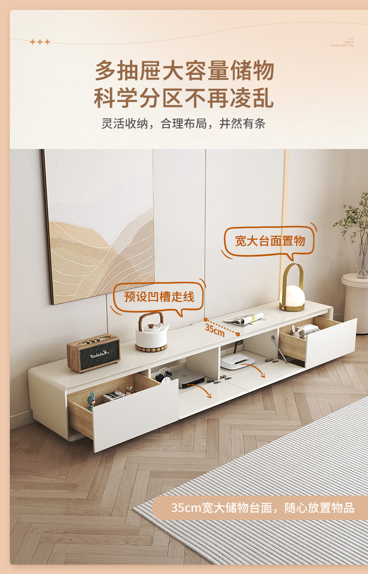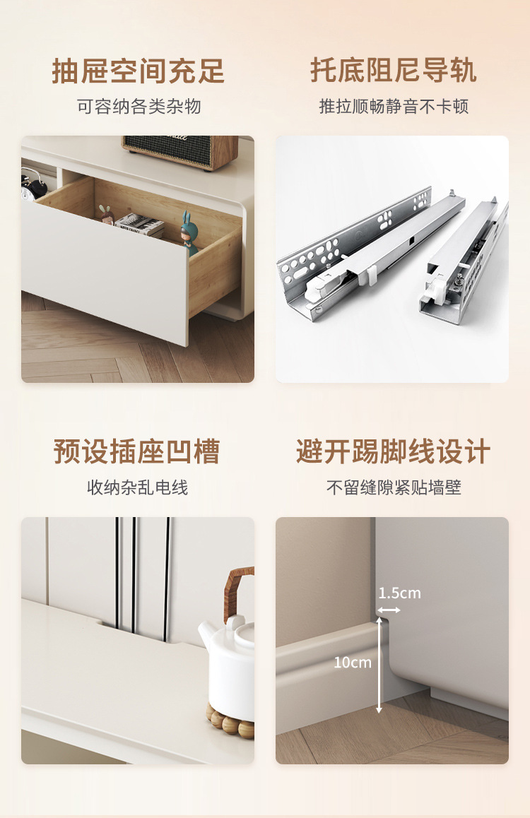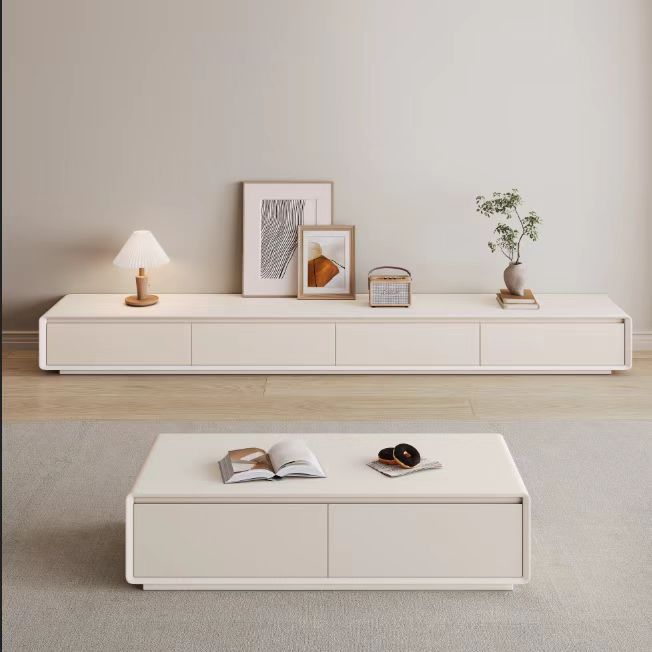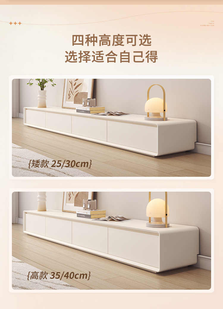 奶油风电视柜茶几组合现代简约实木圆角客厅家用落地影视柜地柜