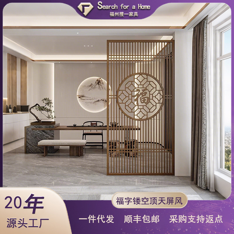 新中式屏風間仕切り、リビングルーム用無垢材遮蔽、玄関正面、オフィス、茶室、座屏、カスタムメイド