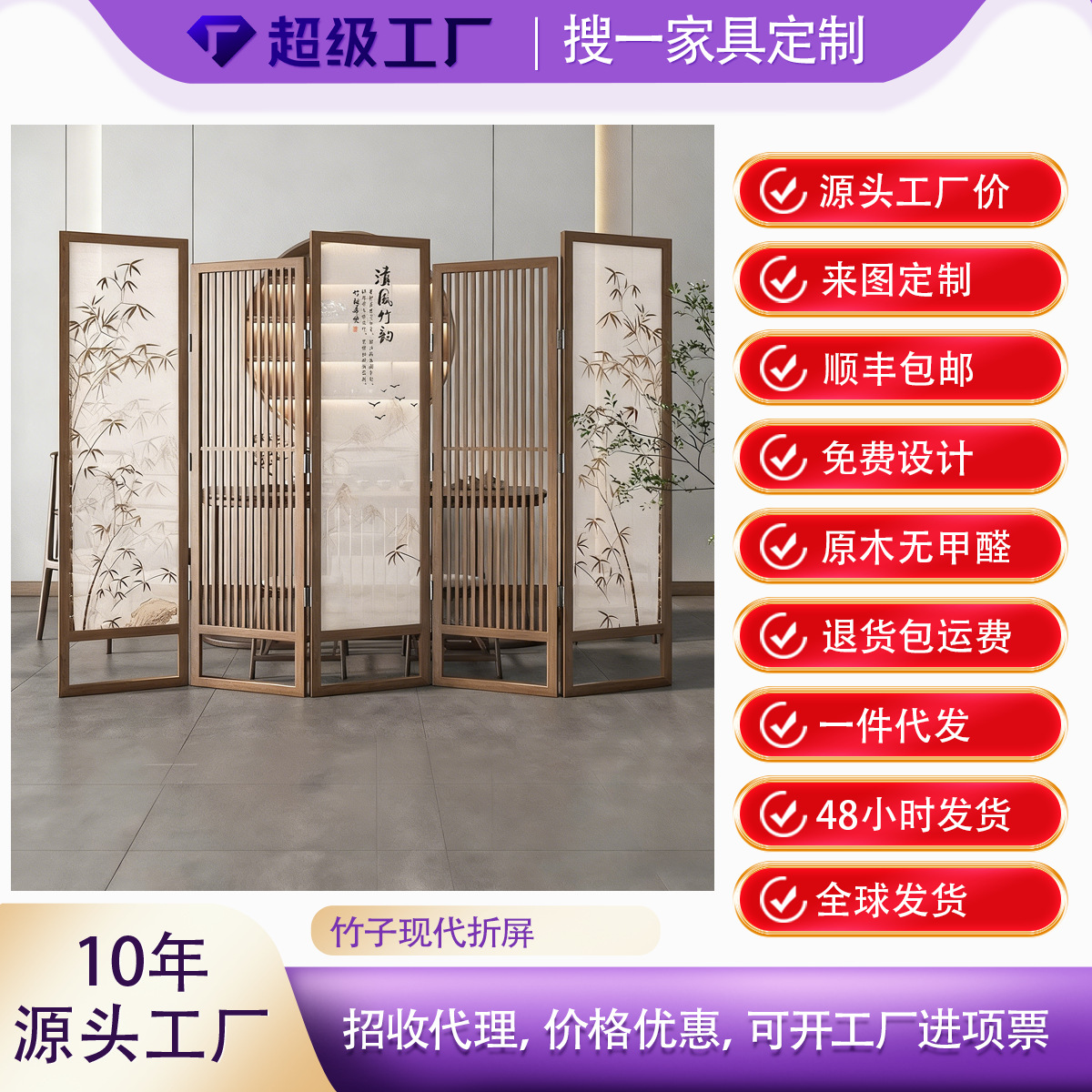 クロスボーダー無垢材屏風リビングルームエントリーパーティション折りたたみモバイル新中国風オフィスレストラン寝室シールドスクリーン