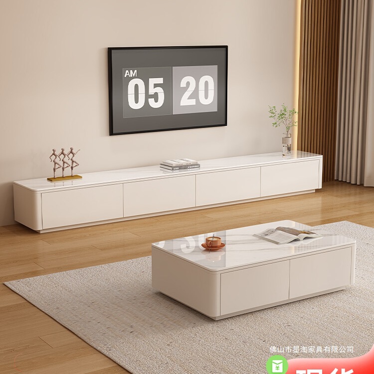 岩板电视柜客厅家用现代简约小户型新款落地实木茶几电视机柜组合