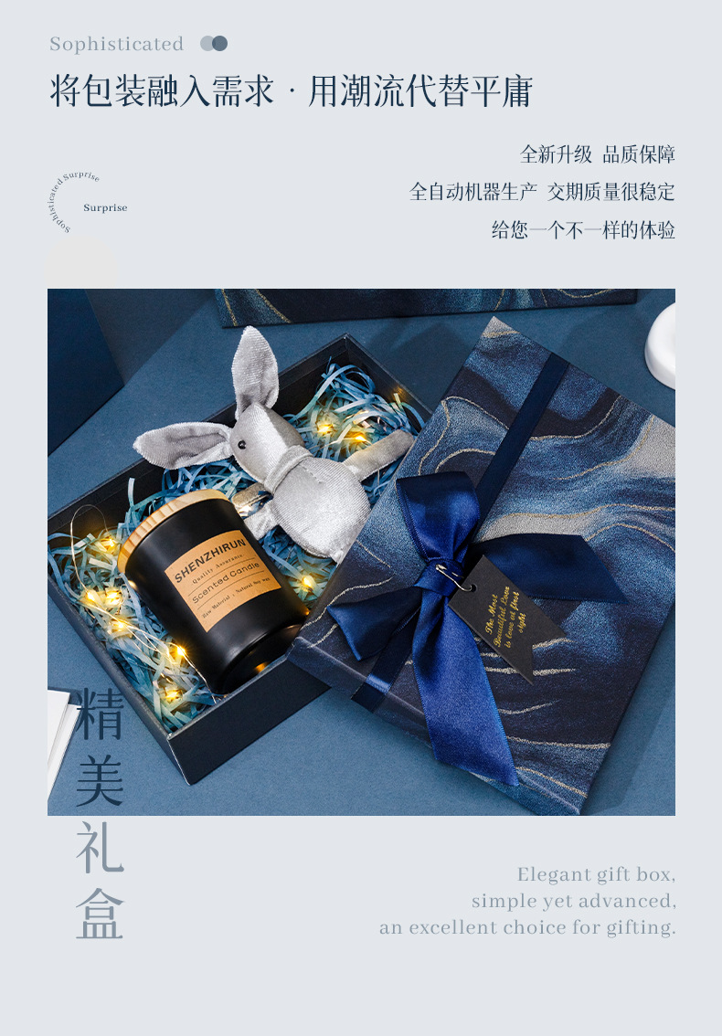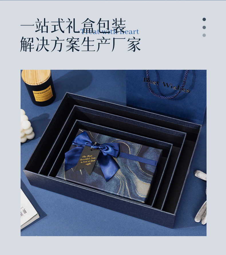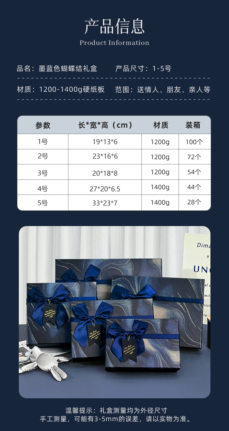 新款现货礼物盒深蓝色蝴蝶结礼品盒长方形天地盖生日包装盒批发