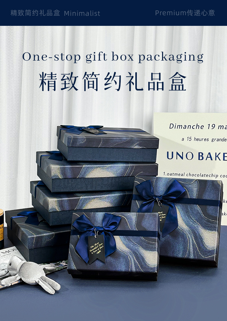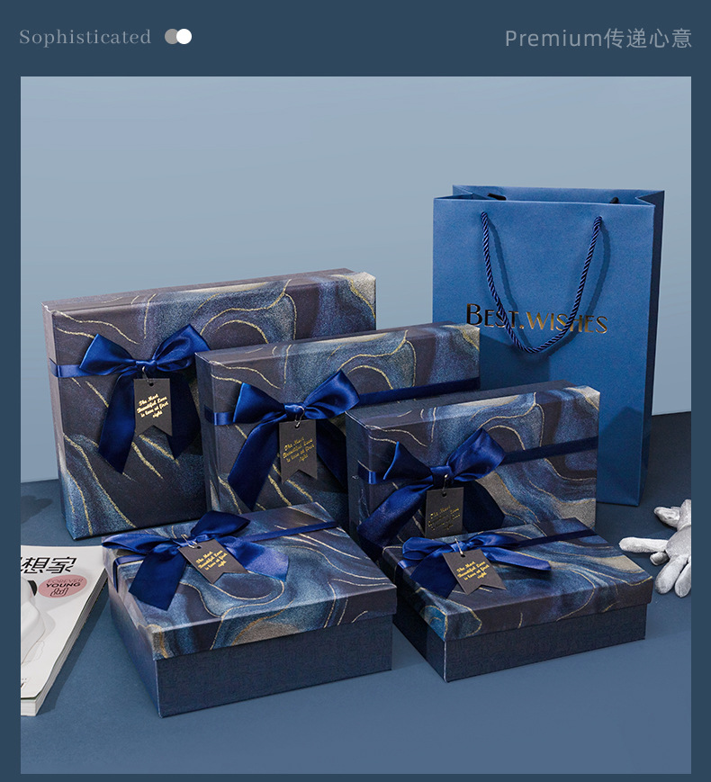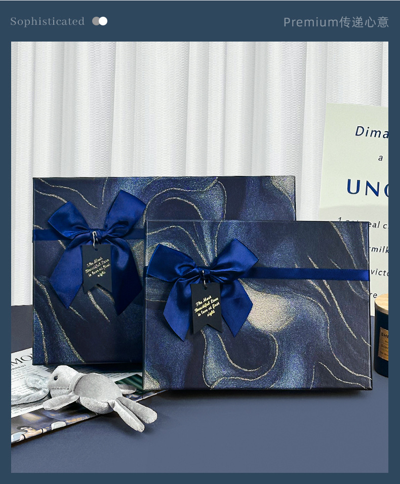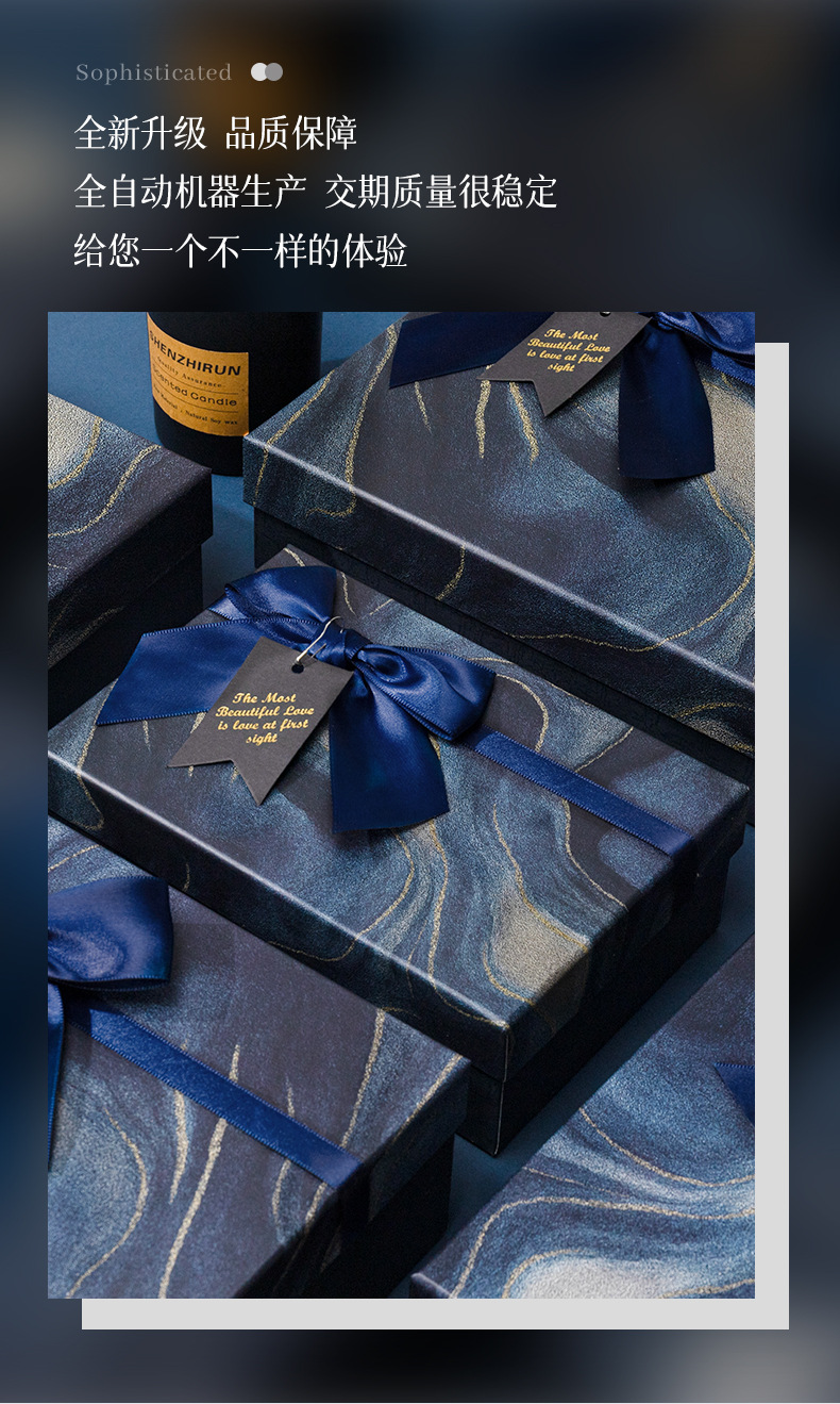 新款蝴蝶结水墨蓝礼品盒天地盖礼物盒生日高级感礼品包装盒现货