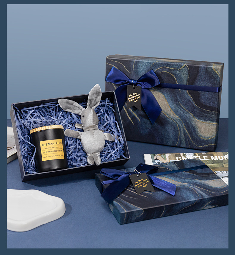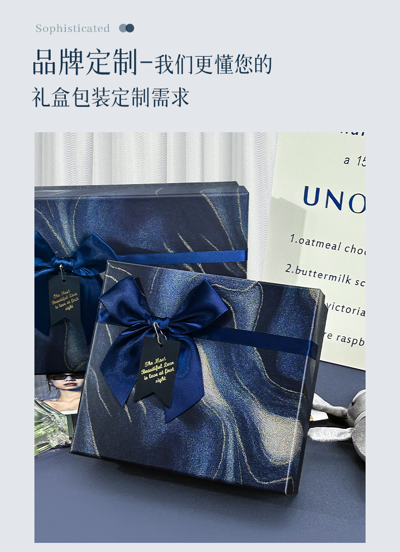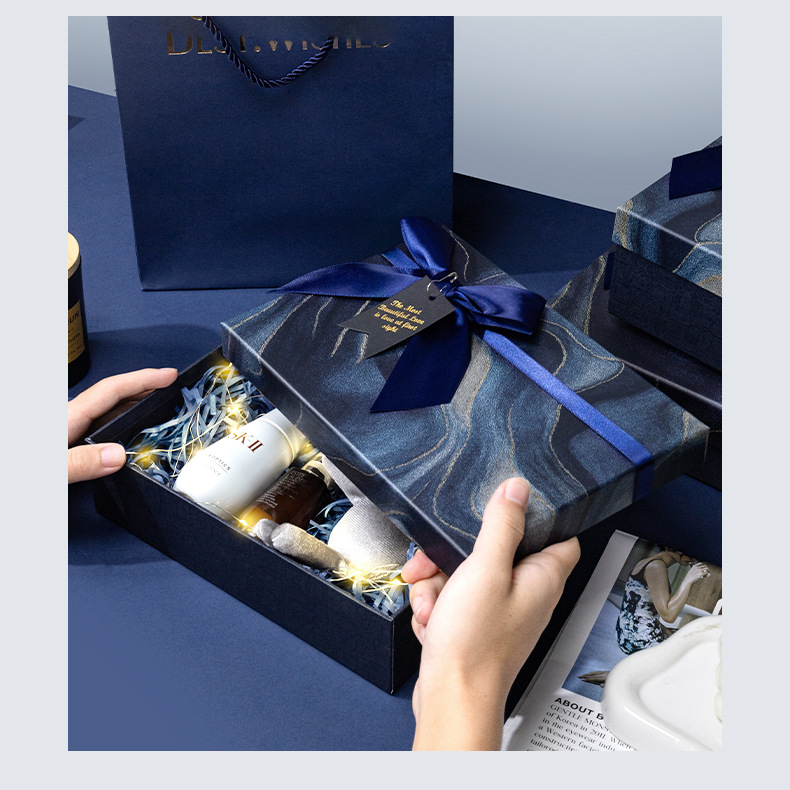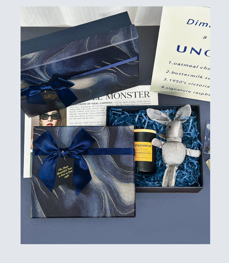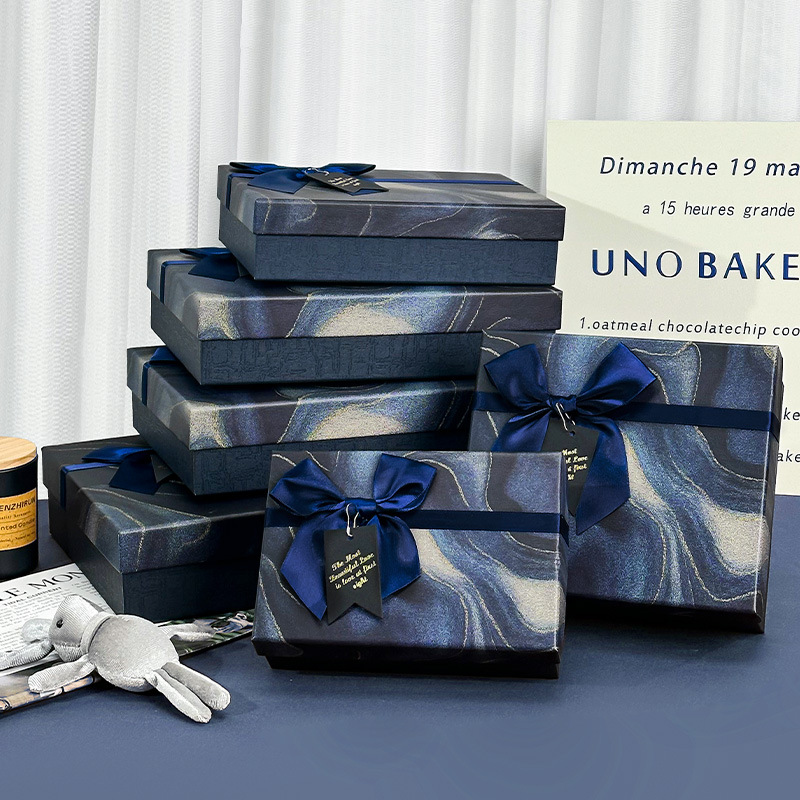 新款蝴蝶结水墨蓝礼品盒天地盖礼物盒生日高级感礼品包装盒现货