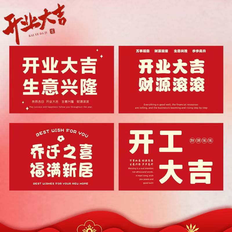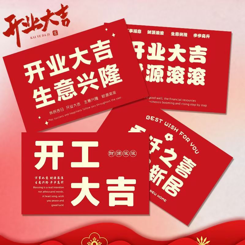 尺寸 开工大吉大卡片【25*16cm】,乔迁之喜福满新居大卡片【25*16cm】,开业大吉生意兴隆大卡片【25*16cm】,开业大吉财源滚滚大卡片【25*16cm】