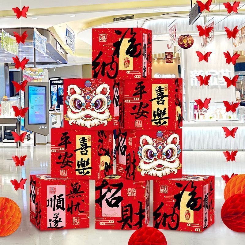 新年元旦装饰银行店铺活动堆堆盒礼盒堆头盒子摆件场景布置代发