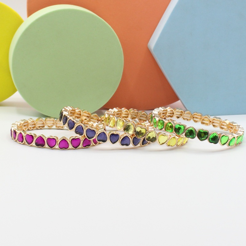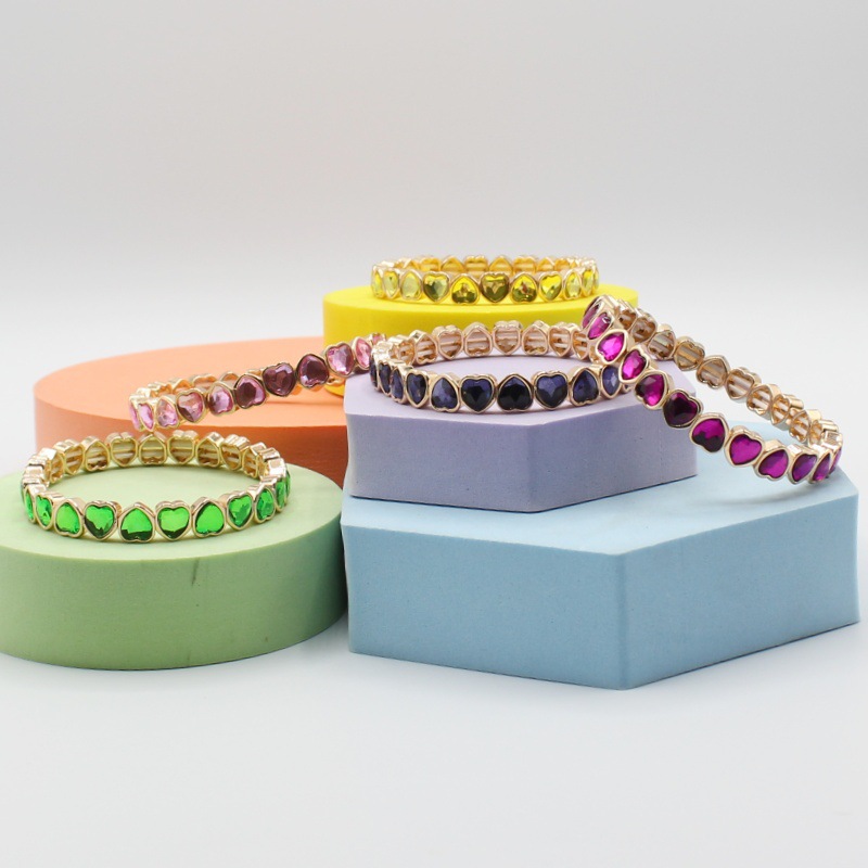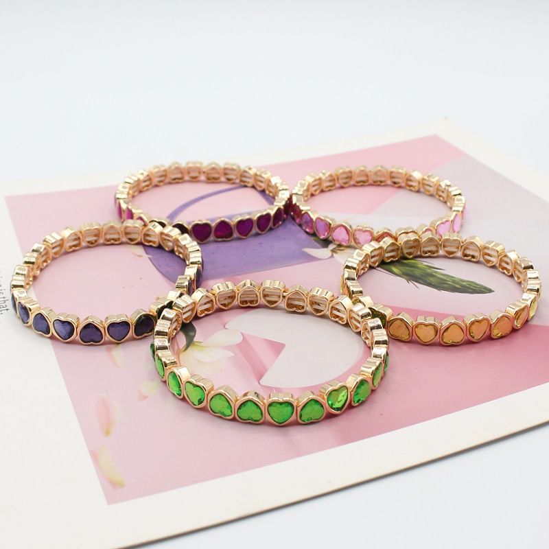 ヨーロッパとアメリカのクロスボーダー愛合金ダイヤモンドブレスレットカラーハート型ブレスレットレディース弾性ブレスレットファッションジュエリー卸売