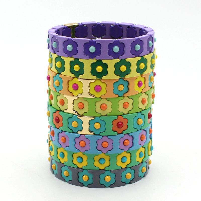国境を越えた新型欧米のエナメルブレスレットボヘミアンカラー花diy塗装弾力ブレスレットスポット卸売り