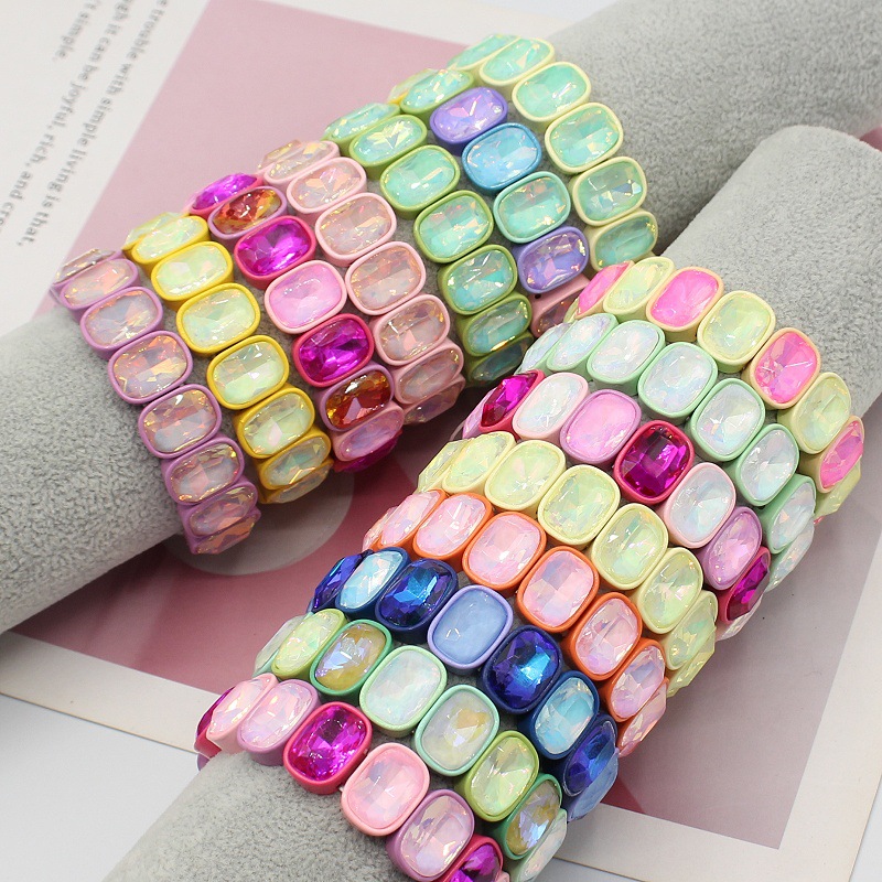 tiktok跨境temu专供摩卡水晶弹力袖口搪瓷手镯情侣橡筋小号方框