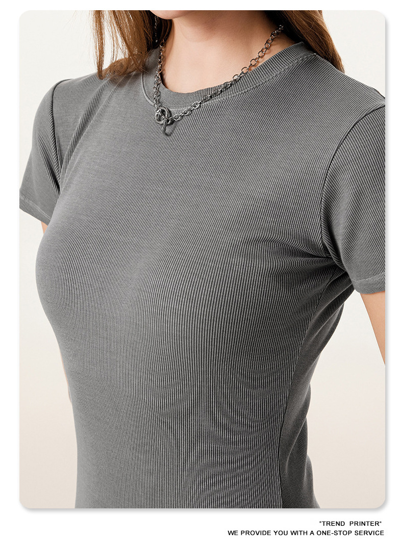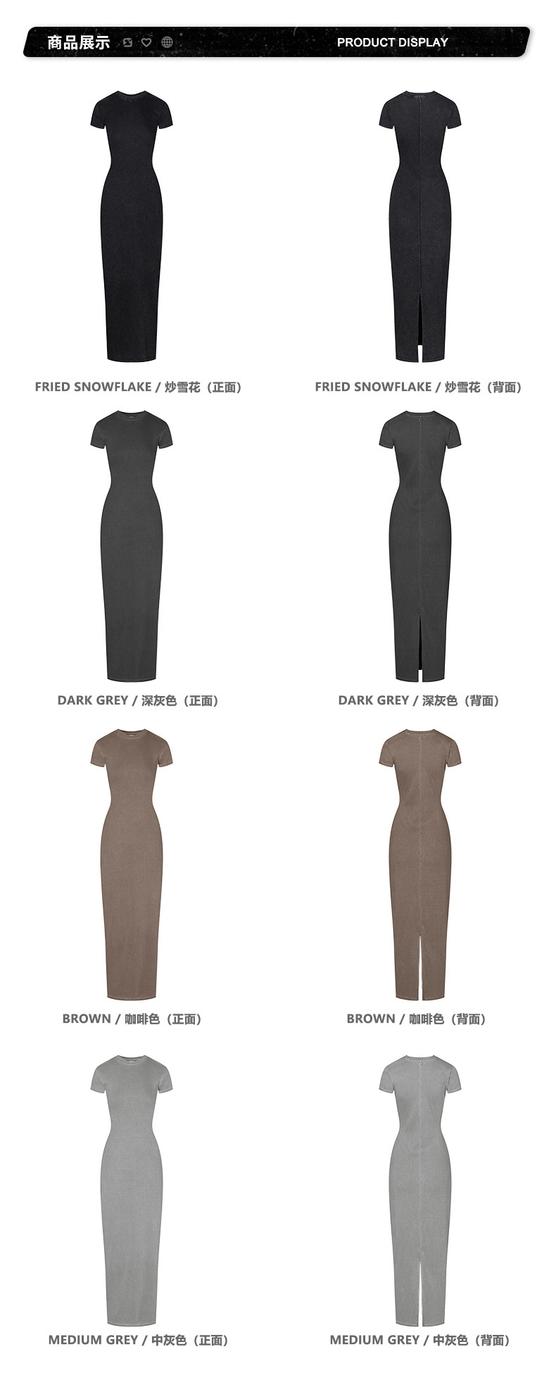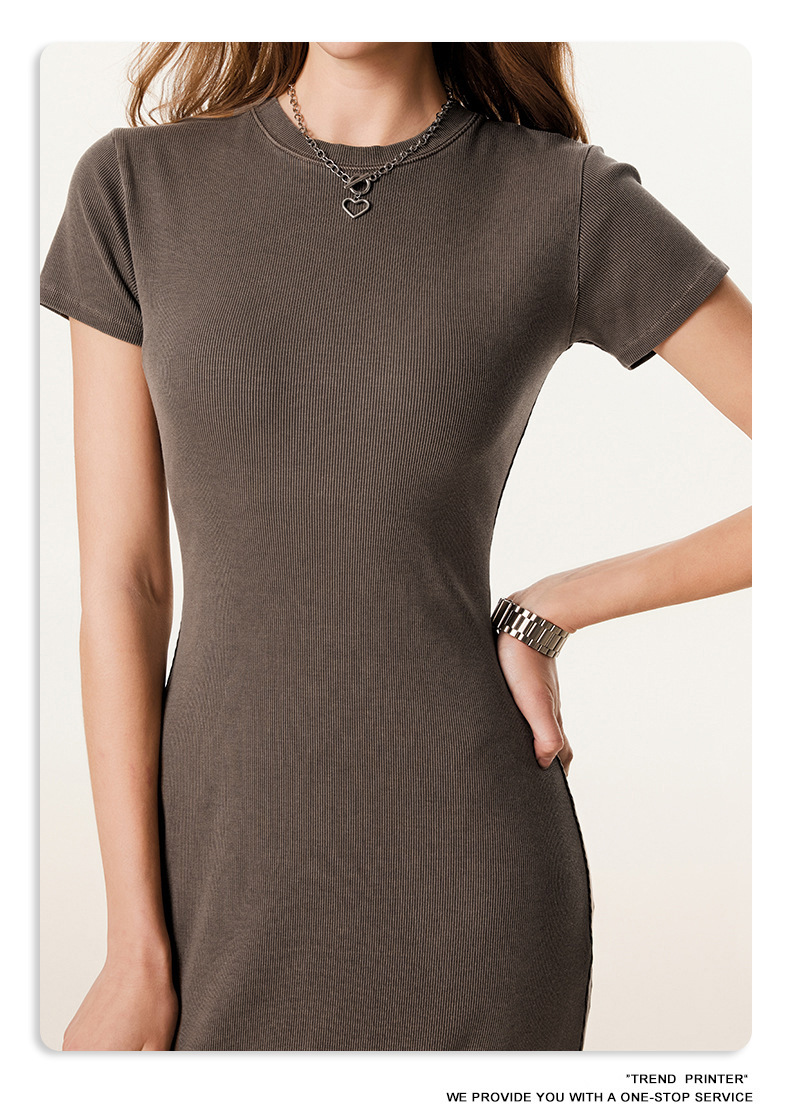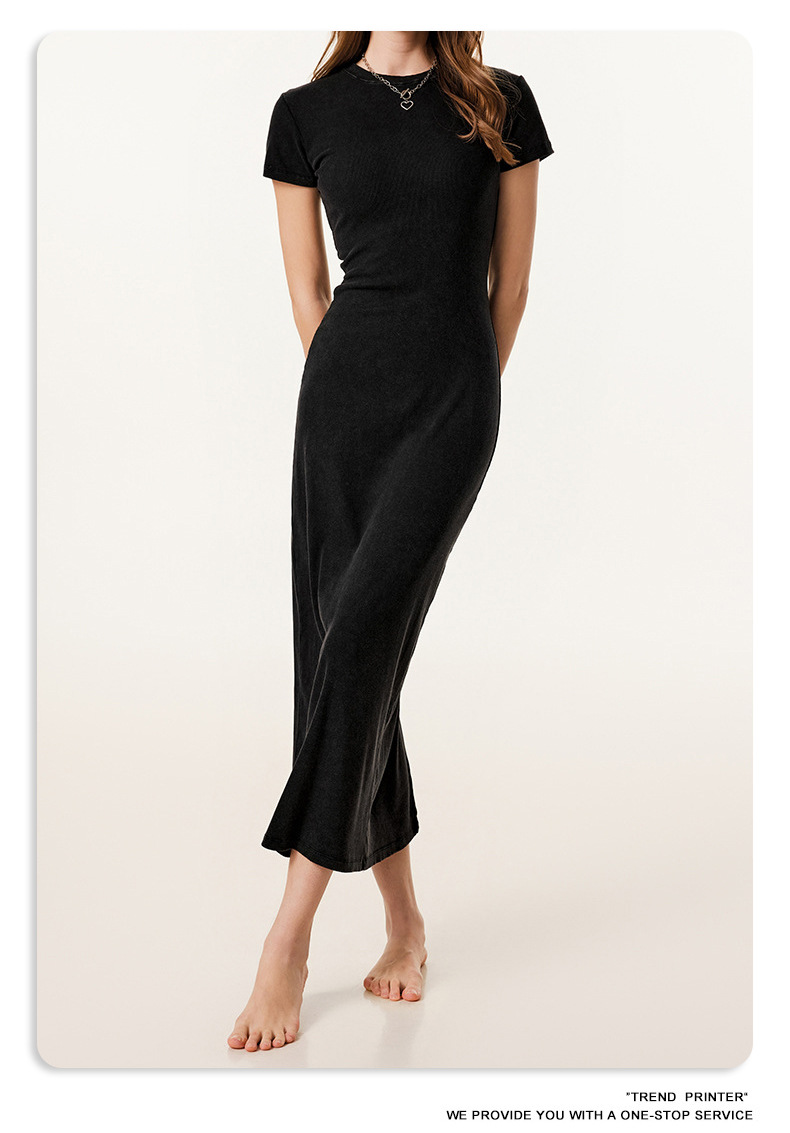 2025冬欧美长款修身显瘦长裙针织短袖连衣裙简约叉螺纹包臀裙女装