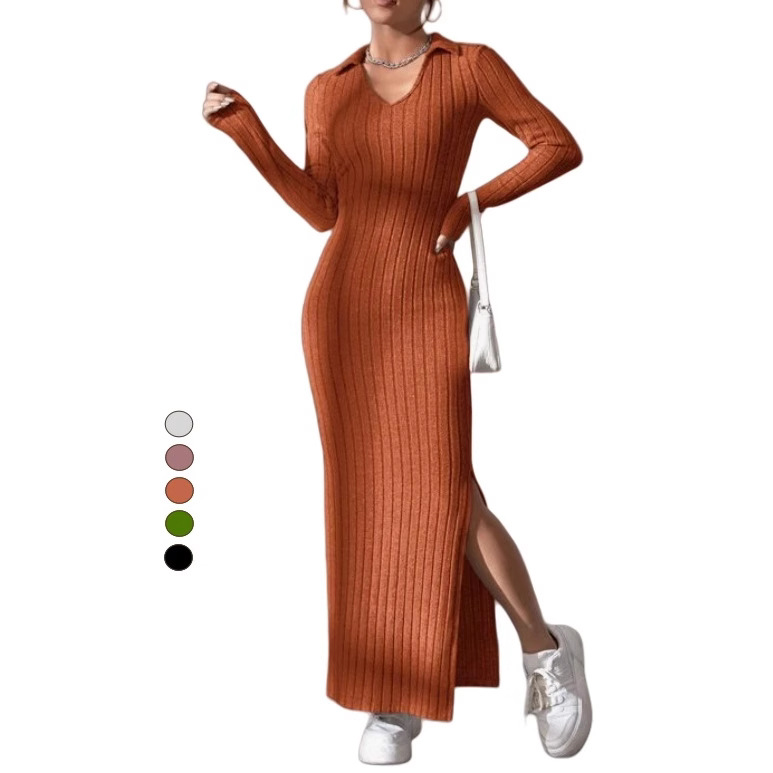 クロスボーダーでエレガントなロングドレス、秋の新作、長袖、襟付き、ヒップを包み込むワンピース、欧米中東で人気販売中