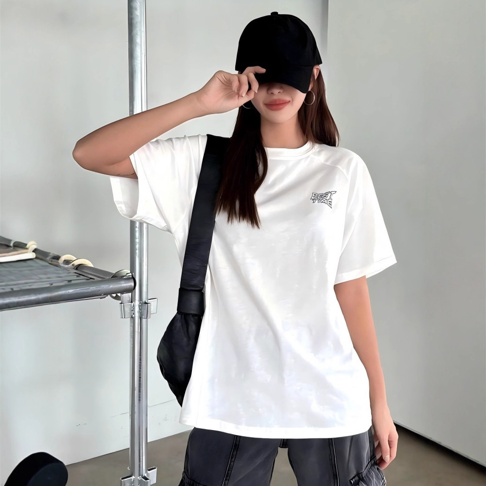 クロスボーダー夏ラウンドネックレイジースタイルシンプルルーズショルダー半袖大きいTシャツレディース韓国カジュアルカバーアップトップ