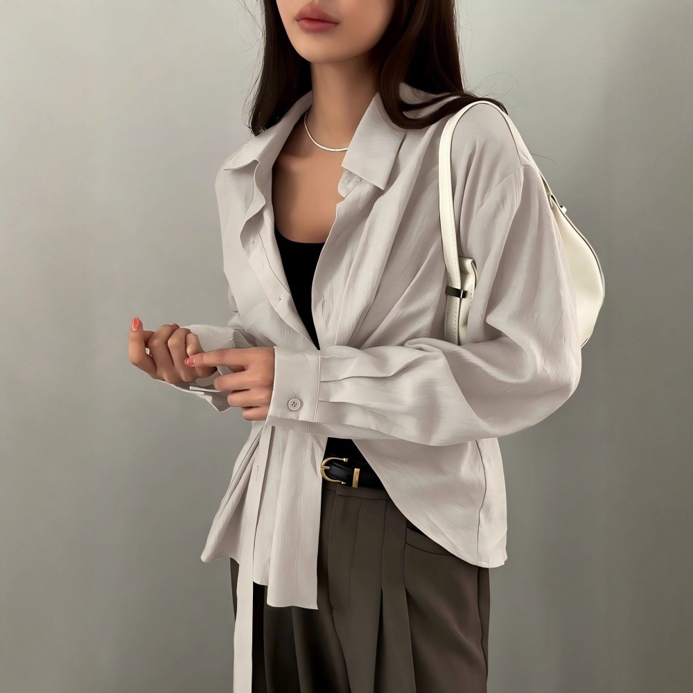 2025 夏 Xiyin temu 韓国スタイルカーディガン長袖シャツシャツ女性のデザインの女性の無地ジャケットトップ